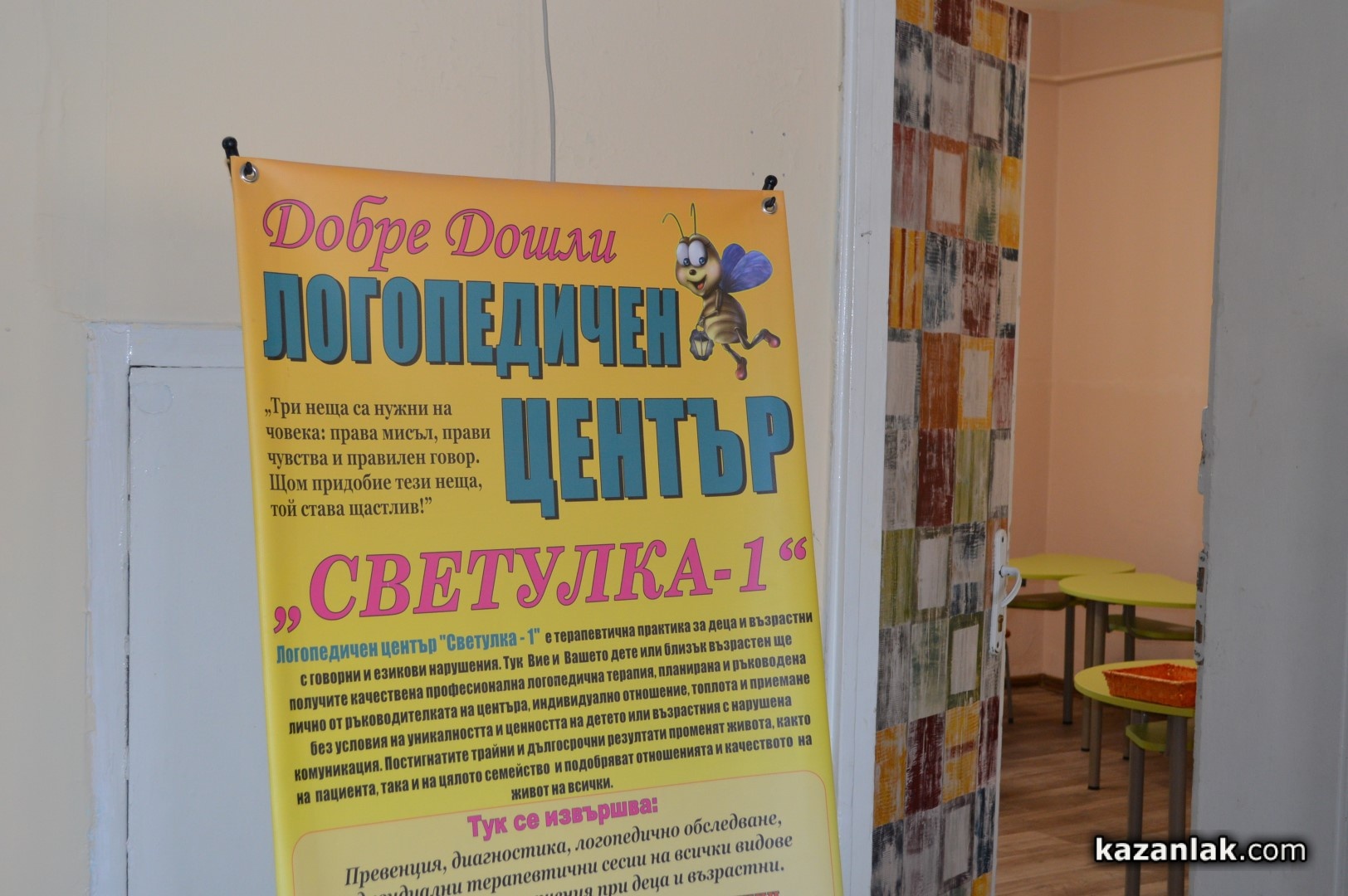 Терапевтична занималня за най-малките ученици от началния етап откри Логопедичен център „Светулка“ в Казанлък за новата учебна година. Групата е малка до 10-12 деца, а занятията се провеждат в продължение на 4 часа след училище или преди обяд за втора смяна.