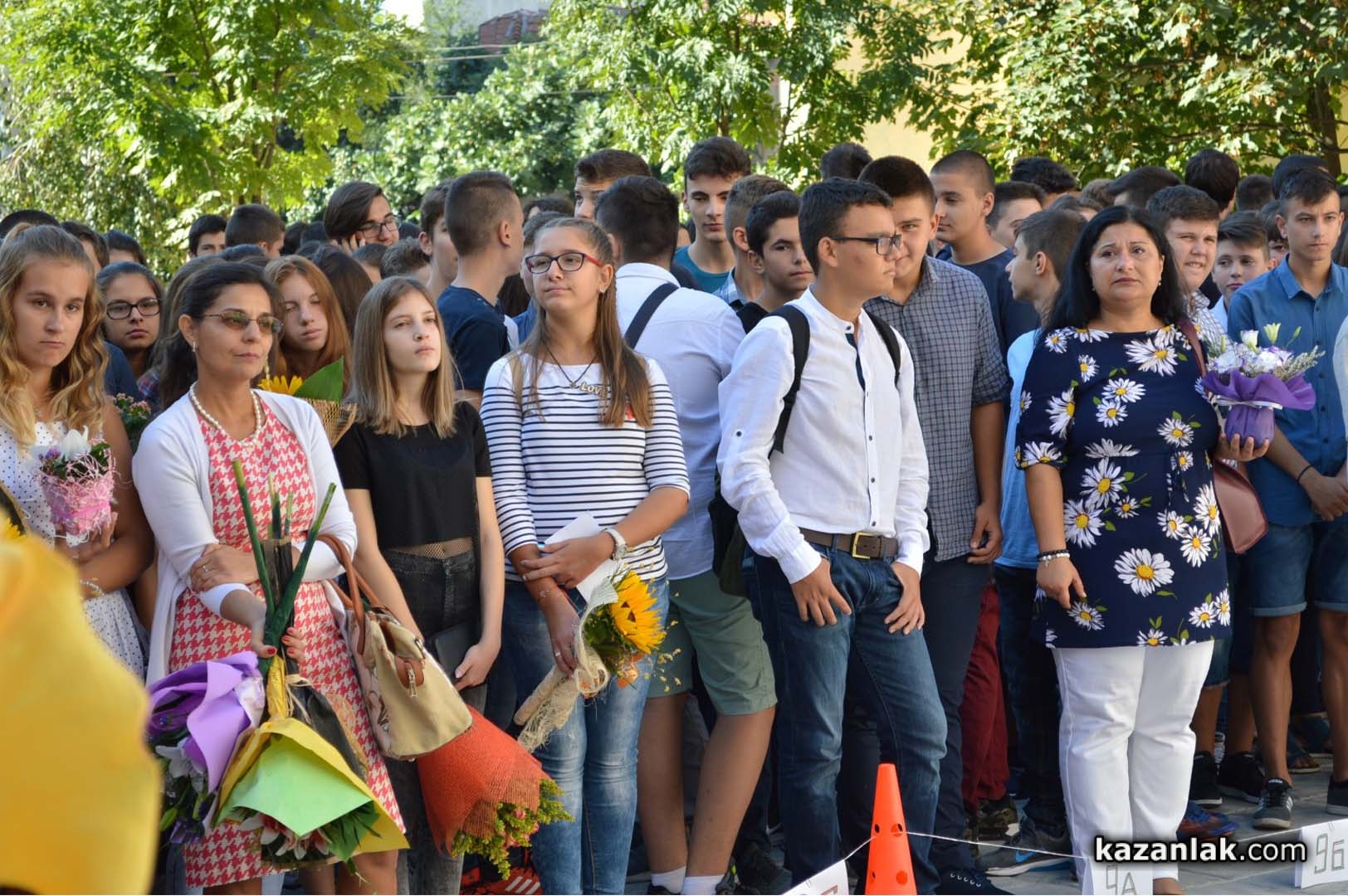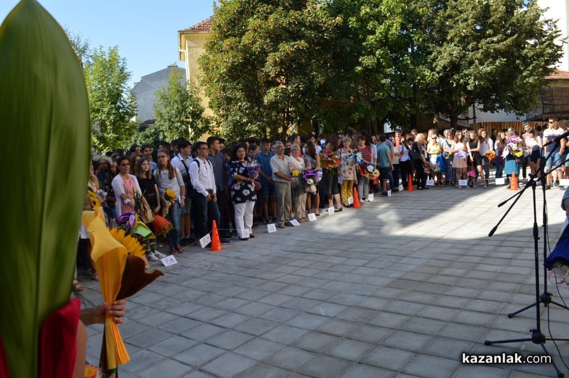 С „Добре дошли!“ посрещна учениците си и директорът на ППМГ Красимир Дамянов. Най-развълнувани, от които бяха „първолаците“ на гимназията – 54-мата петокласниците, които за пръв път влязоха в класните стаи на голямото училище. С два пети класа посреща и тази учебна година казанлъшката Математическа гимназия, след като в началото на лятото успя да убеди регионалния инспекторат и министерството, че отпусната за Казанлък само една паралелка е недостатъчна, както за капацитета на града, така и за изключително високата школа на природо-математическа подготовка, която от десетилетия развива нашата гимназия.