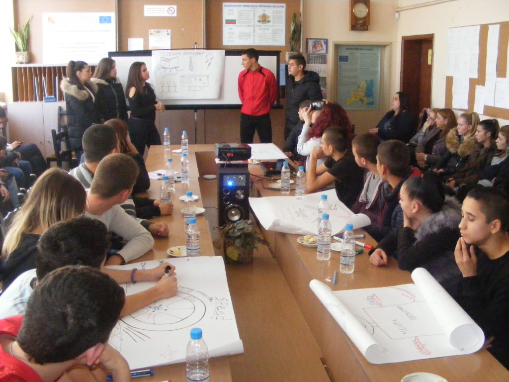 Сформираха се екипи от 10 и 11 клас, които работиха по казуса и атрактивно презентираха своите виждания по темата.