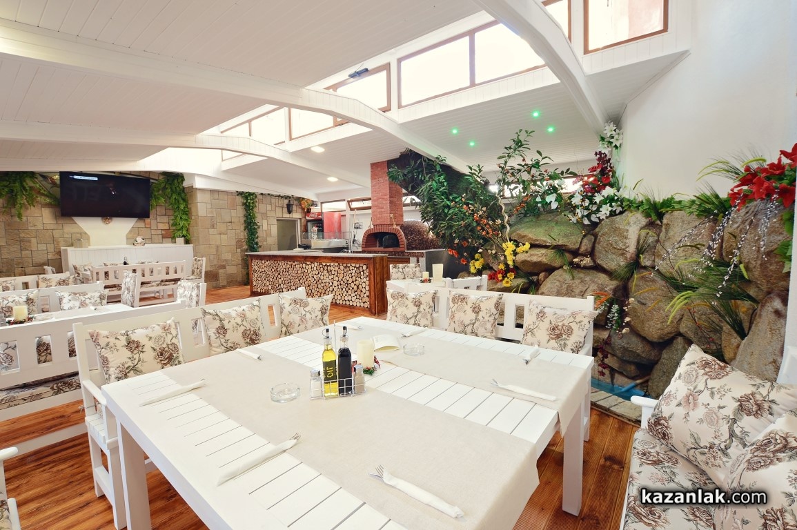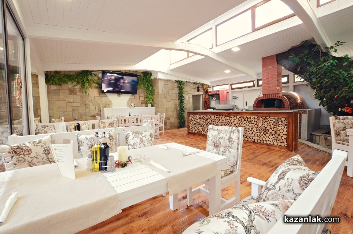 В центъра на Зимната градина е разположена новата италианска пещ на дърва, в която ще се пекат хрускавите горещи пици, с които ресторант „Палас“ ще ни изкушава от тук нататък, като екстра в менюто си. Класическа „Пеперони“, загадъчната „Пиовра“ или дъхавата „Кариби“ са само част от „арсенала“, който майсторът на пиците на пещ, обучен и работил в Италия е подготвил в менюто за казанлъчани.