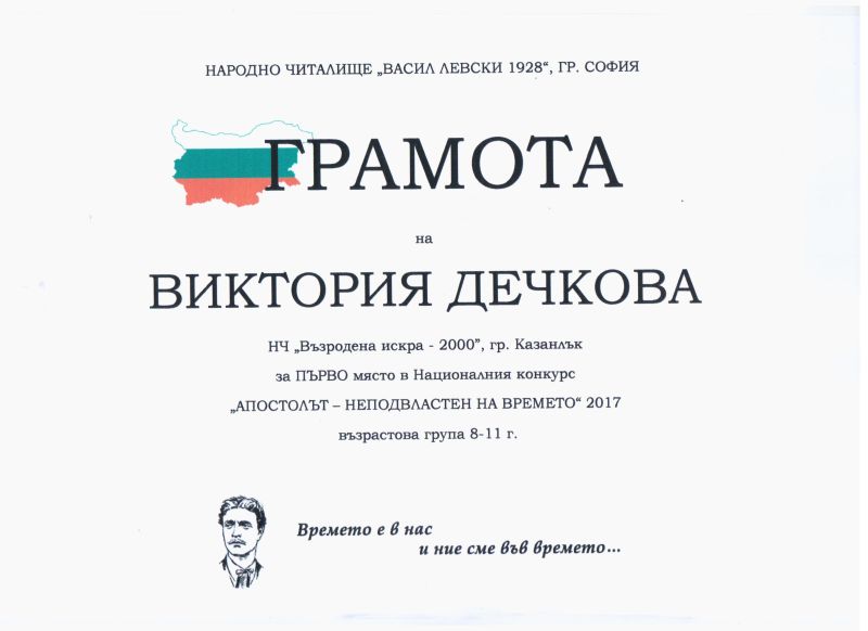 Школата за изобразително изкуство „Ренина“, с ръководител Ренина Лекова при НЧ „Възродена Искра – 2000“, взе участие в Националния конкурс за деца и младежи „Апостолът – неподвластен на времето", посветен на 180 години от рождението на Васил Левски.