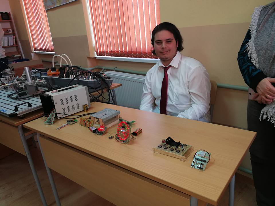 Изследване на електронен усилвател в ателие № 4 представиха Благовест и Сабри от 10 г клас, а своите авторски изобретения изложи в петото ателие Тодор от 12г клас.