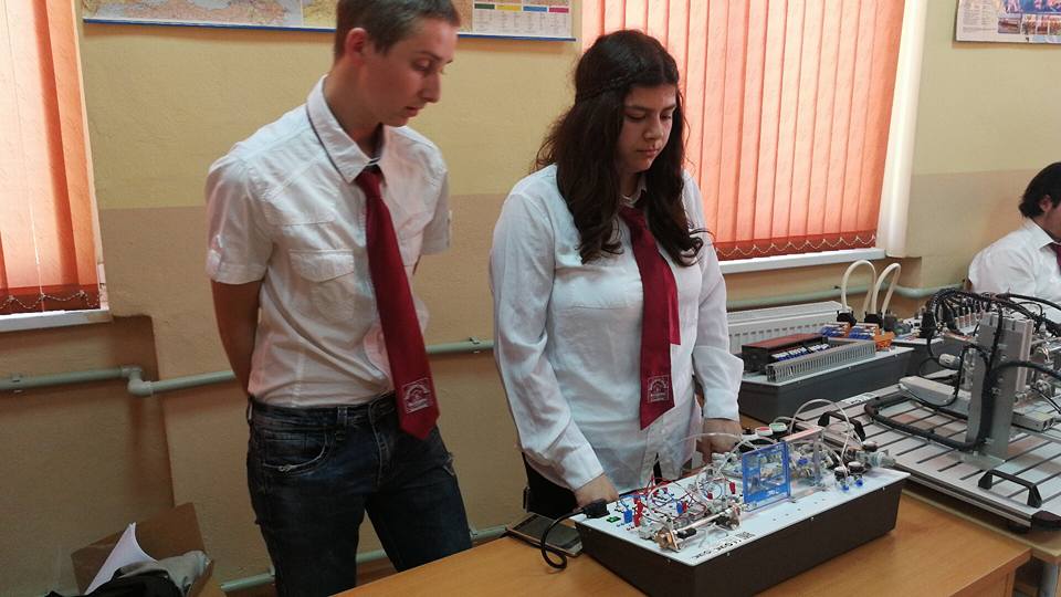 В ателие №3 Христо и Стела от 11 г клас запознаха присъстващите с автоматизирана система за електропневматично управление на портална врата.