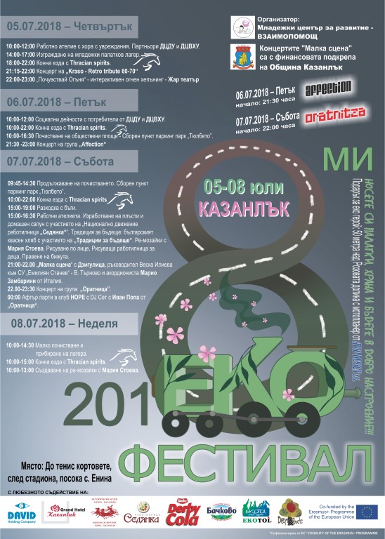 За осма поредна година СНЦ „Младежки център за развитие-Взаимопомощ“, съвместно с Община Казанлък, организират Еко фистивал 2018.