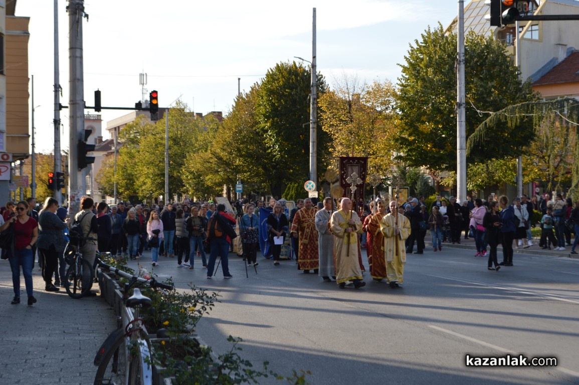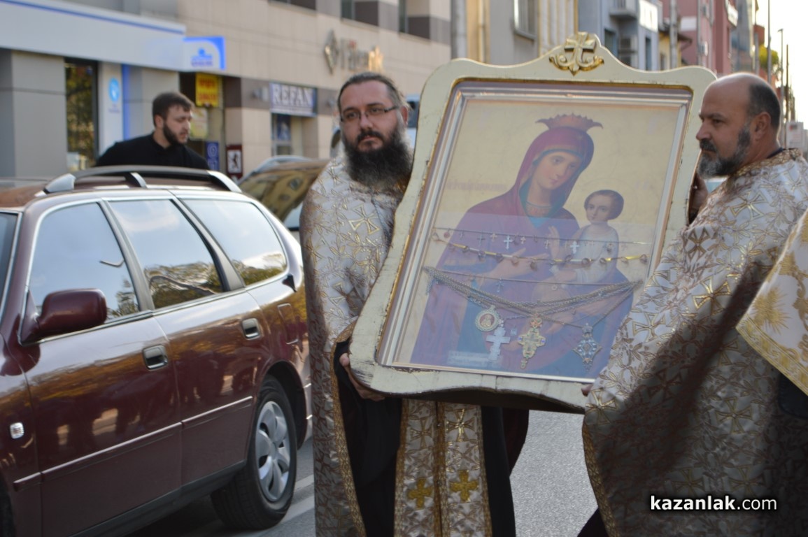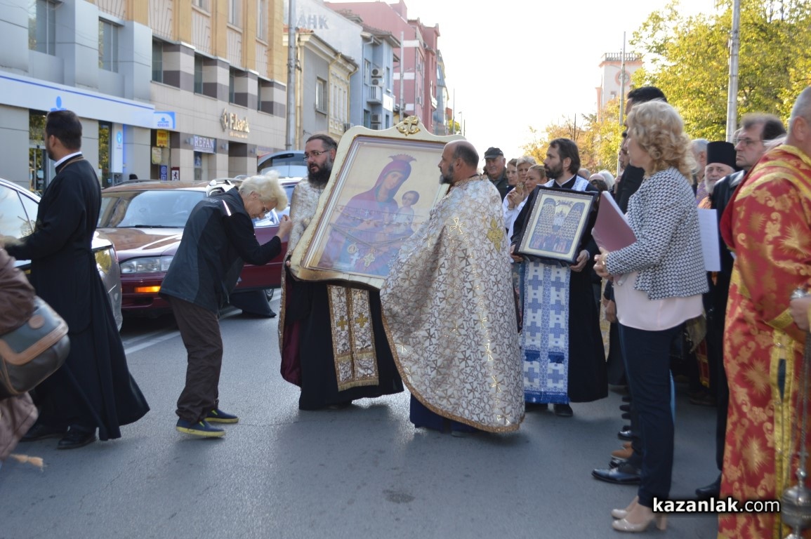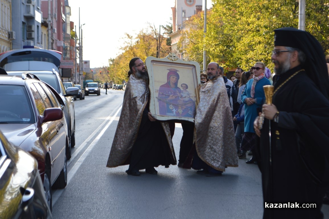 Иконата бе посрещната на Лъвовата чешма и бе съпроводена до църквата „Успение Богородично“, където в момента старозагорският митрополит Киприан отслужва Празнична вечерна служба.