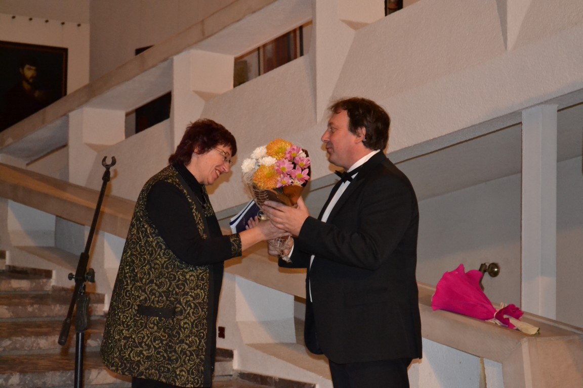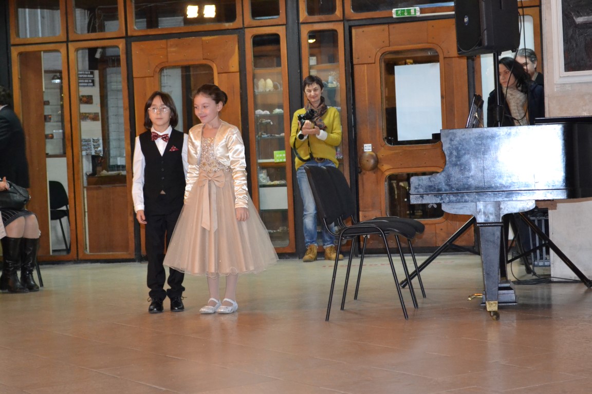 Мил музикален поздрав отправиха невероятните млади таланти с многобройни международни награди Християна Харалампиева и Дамян Стоев, възпитаници на изтъкнатия клавирен педагог на Казанлък Елена Юлиянова.