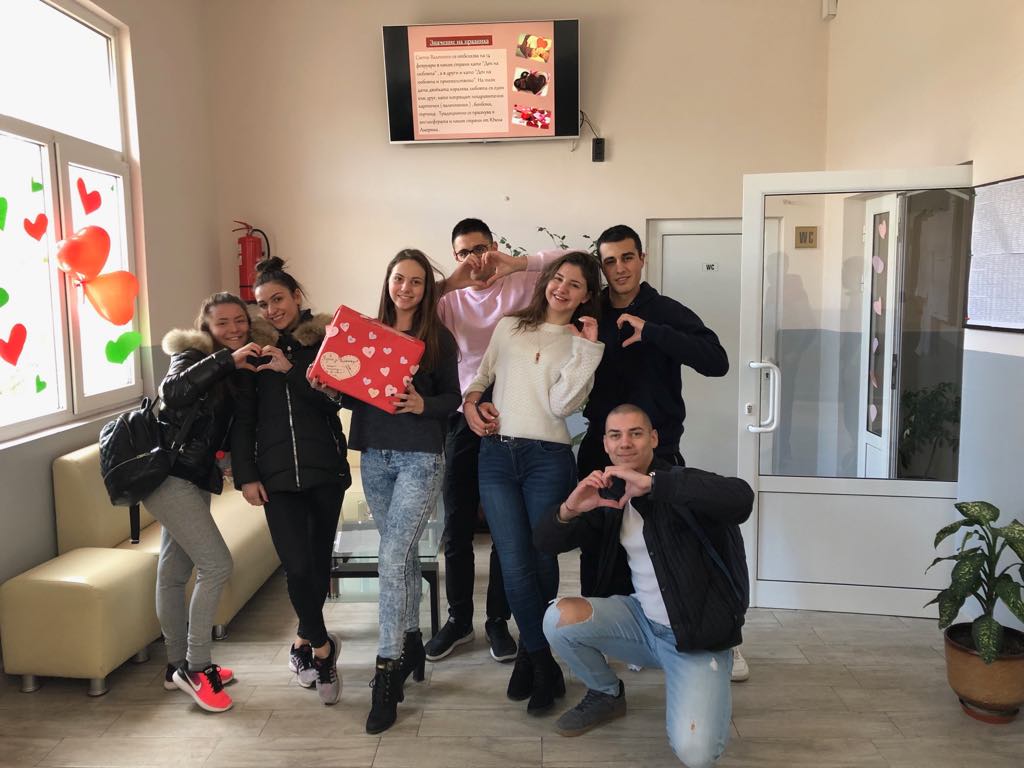 Ученическия съвет при ППМГ “Никола Обрешков“, гр. Казанлък, със съдействието на педагогическия съветник Татяна Цоневска, създадоха празнично настроение сред учениците и учителите послучай празника на влюбените Свети Валентин.