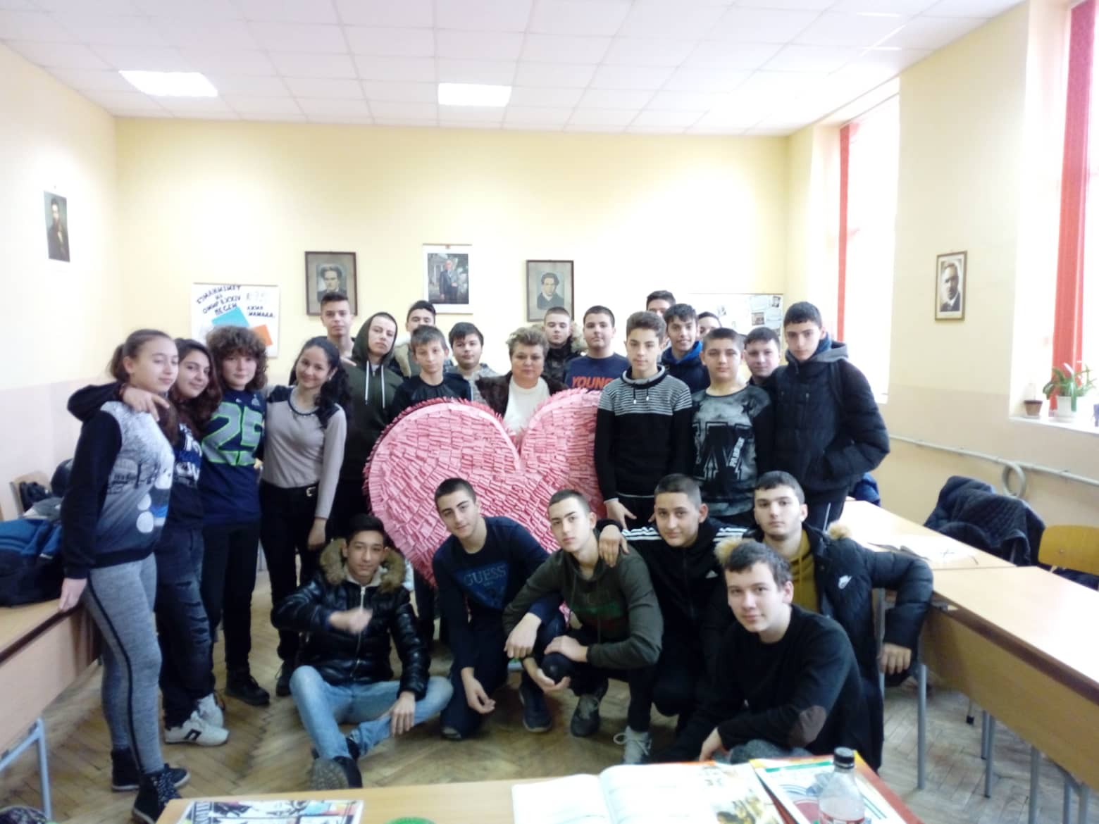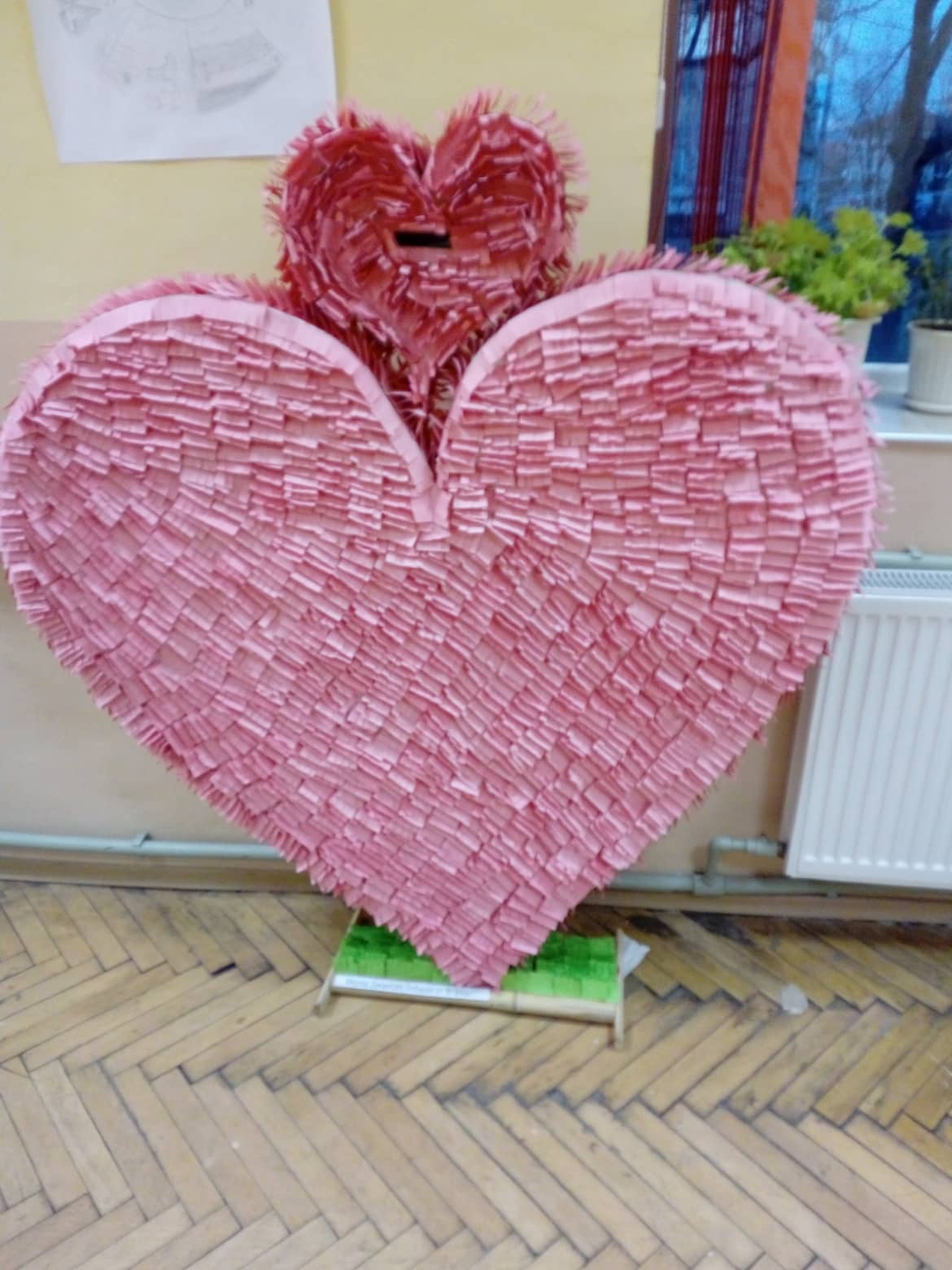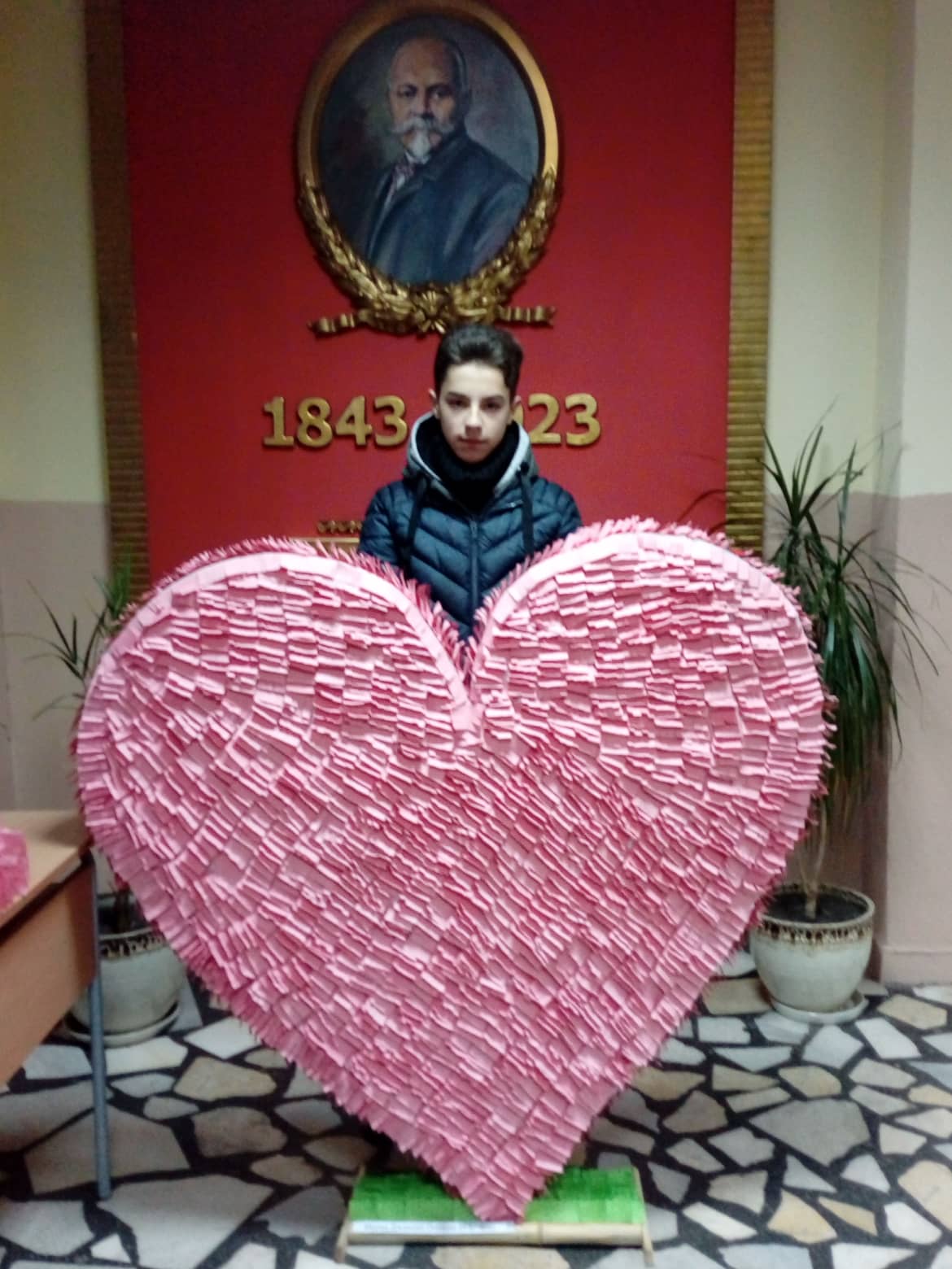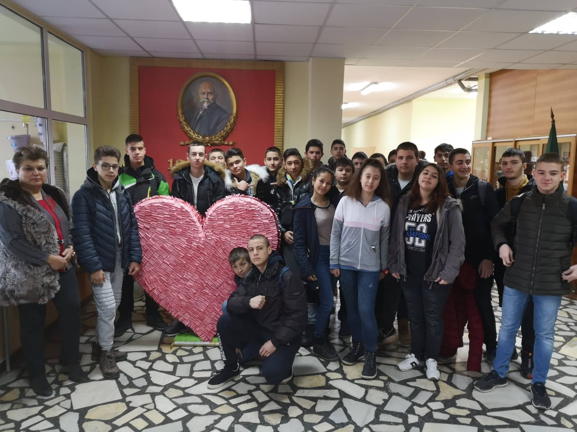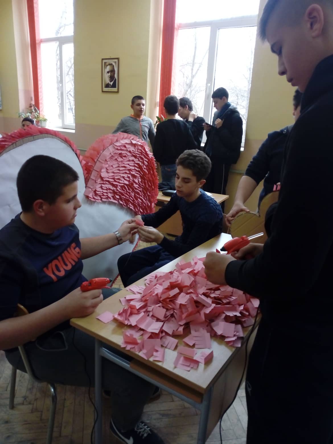 Но какво е Св. Валентин без валентинки? За целта е нужна подходяща кутия, която отново е с форма на сърце. Класът престъпва към действие и творческата мисъл е обхванала всички, защото за първи път се изработва специфичен и креативен, красив и впечатляващ с мащабите си проект. За да стане достояние на всички, сърцето е поставено във фоайето за снимки, селфита и добро настроение.