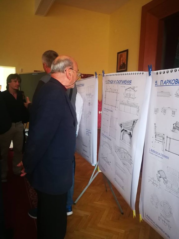 В екипа, разработил архитектурния проект, са учениците от 11 и 12 клас на специалност „Строителство и архитектура”, а представянето им бе поднесено със завиден професионализъм. Хатидже и Стоян „разчетоха” функционалните схеми на терена, Мартин и Теодор очертаха комбинираните игрища, пригодени за любимите на младежите колективни спортове, Лъчезар и Николай запознаха публиката с планираните сгради и съоръжения, а Диян и Хатидже представиха парковите мебели, придаващи завършен вид на проекта.