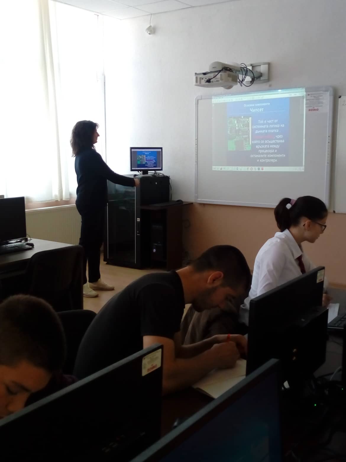 Не само техниката обаче е фактор в един училищен компютърен кабинет! Това, което учениците трябва да усвоят с помощта на интелигентните машини, е плод на обща работа – преподаватели, ученици, желание и мотивация. Ето защо екипът на гимназията следва иновациите и подкрепя всяка една възможност за развитието на възпитаниците си в академичното знание и в професионалното поприще.Илюстрация на тази амбиция беше и първия урок, проведен в новата учебна стая - госпожа Дора Бомбева представи урок на тема „Дънни платки- компоненти”. Ученици от специалност Мехатроника, дуално обучение, ще са тези, които ще провеждат часовете си в новоизградения кабинет, който разполага с достатъчно техника, за да отговори на очакванията на съвременния дигитален свят.