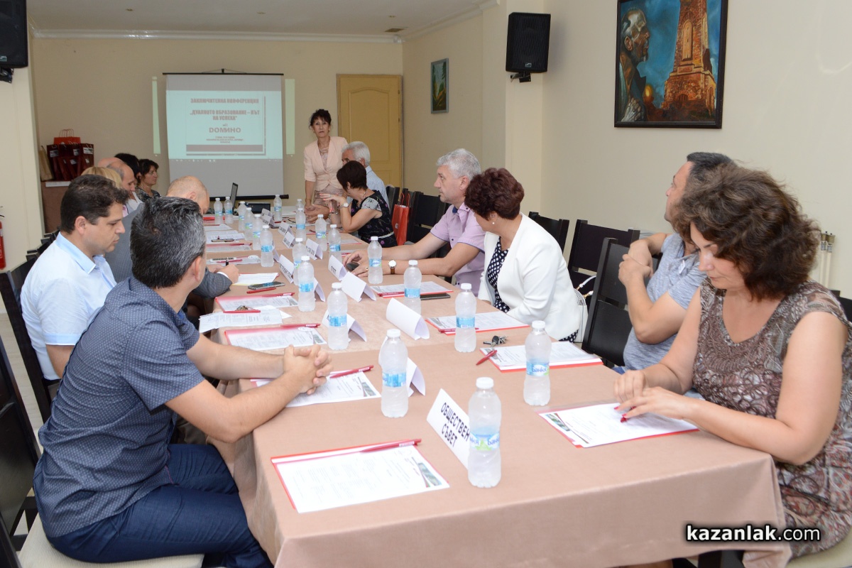 Само преди няколко седмици, Казанлък бе отличен с две награди по проекта Домино. Професионална гимназия „Иван Хаджиенов“ бе отличена за първата гимназия в България, подала заявление за включване в ДОМИНО. Казанлъшката фирма „Арсенал“ АД получи приз за фирма, назначила на постоянна работа най-много ученици след завършване на дуално обучение.