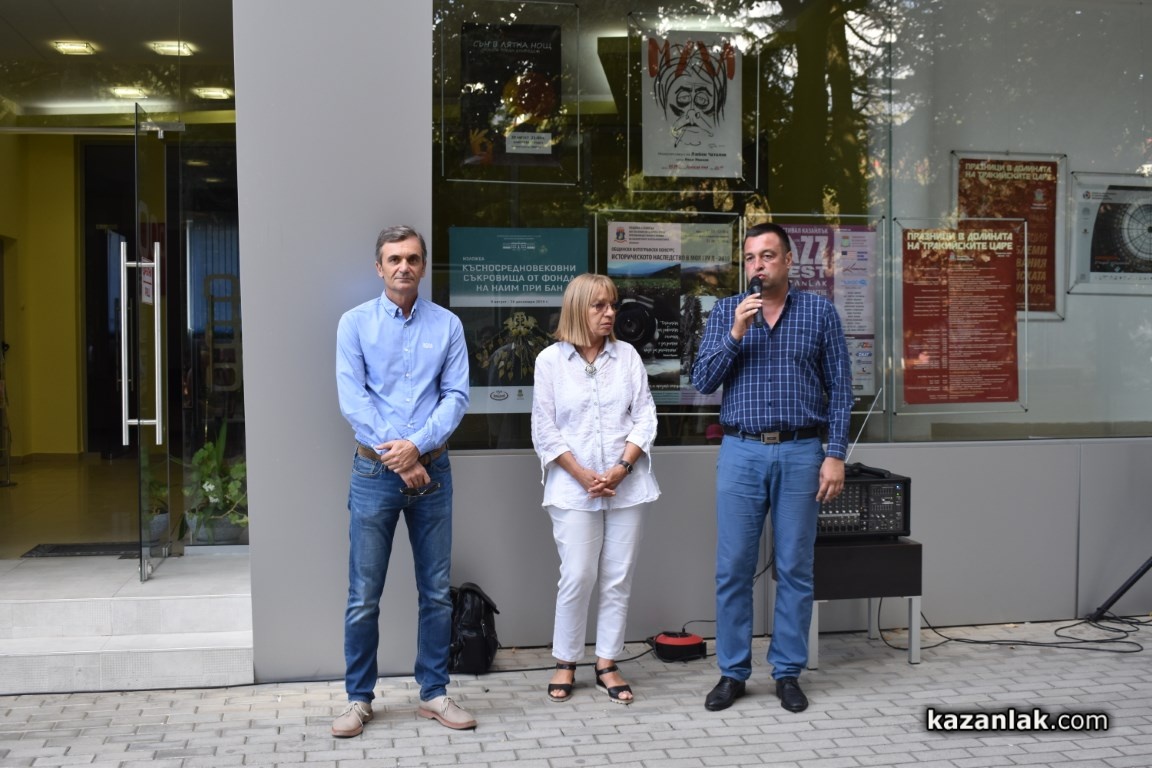Директорът на Исторически музей "Искра" д-р Момчил Маринов, г-н Златанов и проф. дин Валерия Фол запознаха всички гости на изложбата с тракийските наследства, които са запечатани и представени на таблата.