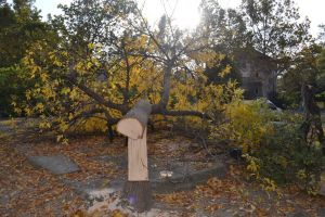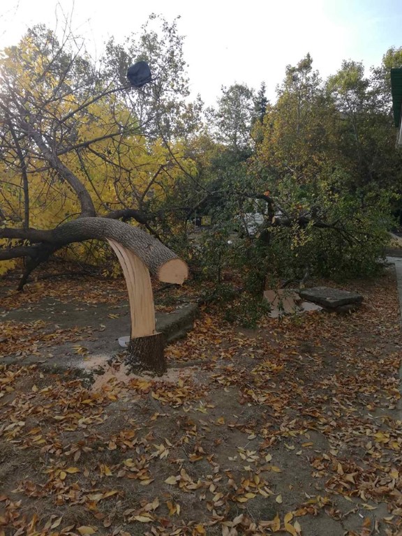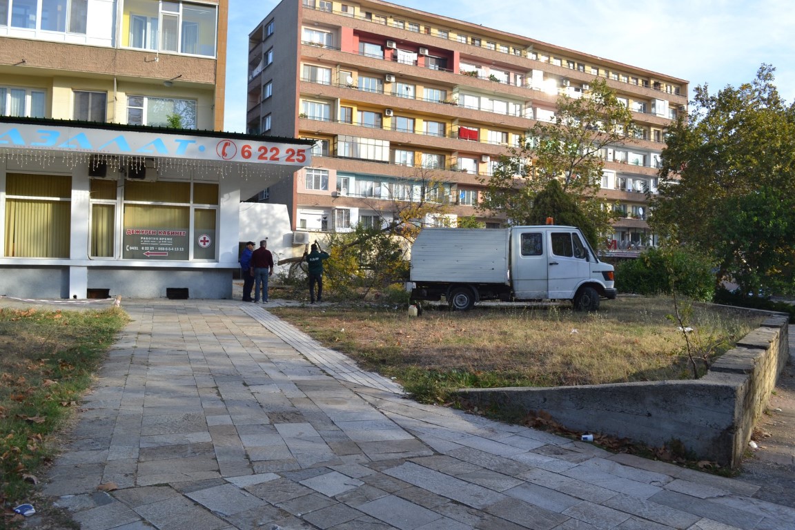 С нова вандалска проява осъмна Казанлък. Три красиви дървета от градинката до Медицински център „Мазалат“ бяха жестоко посечени тази нощ, а наскоро ремонтирано пространство до паметника на Георги Кирков се сбогува с част от паветата, които бяха извадени и старателно подредени до монумента.
