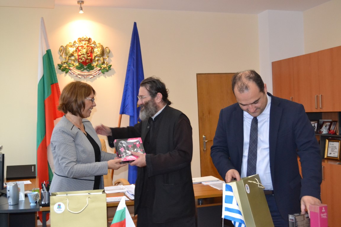Среща за побратимяване с гръцкия град Дидимотика се проведе днес в кабинета на кмета на община Казанлък. Последни детайли по побратимяването на Казанлък с Дидимотика, Гърция уточниха Галина Стоянова и нейният колега Ромилос Хаджияноглу, кмет на Дидимотика. Той сподели, че това е първа официална среща за него като градоначалник и си пожела това да му даде добър старт за работа на отговорната длъжност. „Приемете, че сте при приятели!“, приветства 4-членната делегация от Гърция Кметът на Община Казанлък и отбеляза: „Вие ще се побратимите не само с Казанлък, а с всички 12 града в цял свят, с които имаме добро приятелство. Ставаме по-богати с приятелствата си!“. Галина Стоянова подчерта важността на практическите контакти за младите хора и културните среди: „Трябва да изградим здрави връзки, които да завещаем във времето.“, пожела тя.