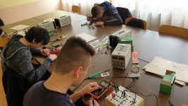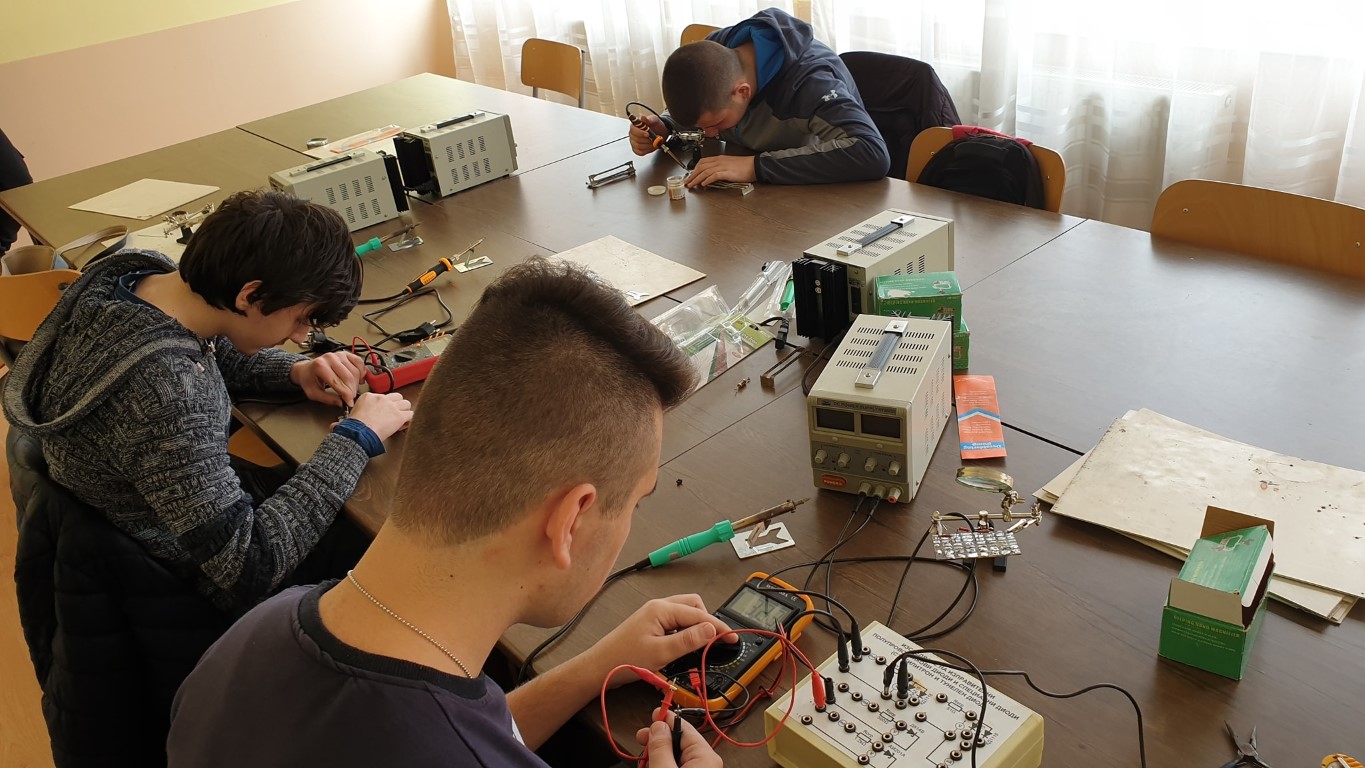 На 28-и в кабинета по практическа подготовка в областта на електрониката се проведе училищно състезание “Приложна електроника“ между ученици от 9 и 10 клас - разпознаване и разчитане на електронни елементи - резистори, кондензатори и диоди, прилагане на основните закони от електротехниката, монтаж и демонтаж на електронни елементи върху универсална платка, разчитане на електронна схема.