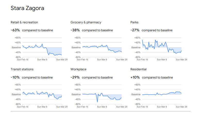 Вече са факт и първите отчети от 29 март. Google е изчислил за област Стара Загора: