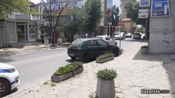 Водачката е без видими наранявания. Материални щети са нанесени на автомобила и кашпата.