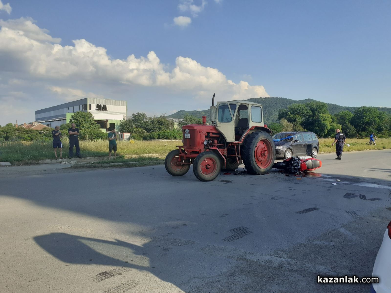Моторът се е движил зад трактора по пътя в посока от Бузовград към Казанлък. Очевидци споделиха, че тракторът е предприел завой на ляво, когато поради не достатъчна дистанция мотора се забил в него.