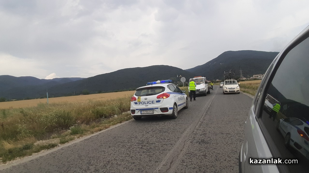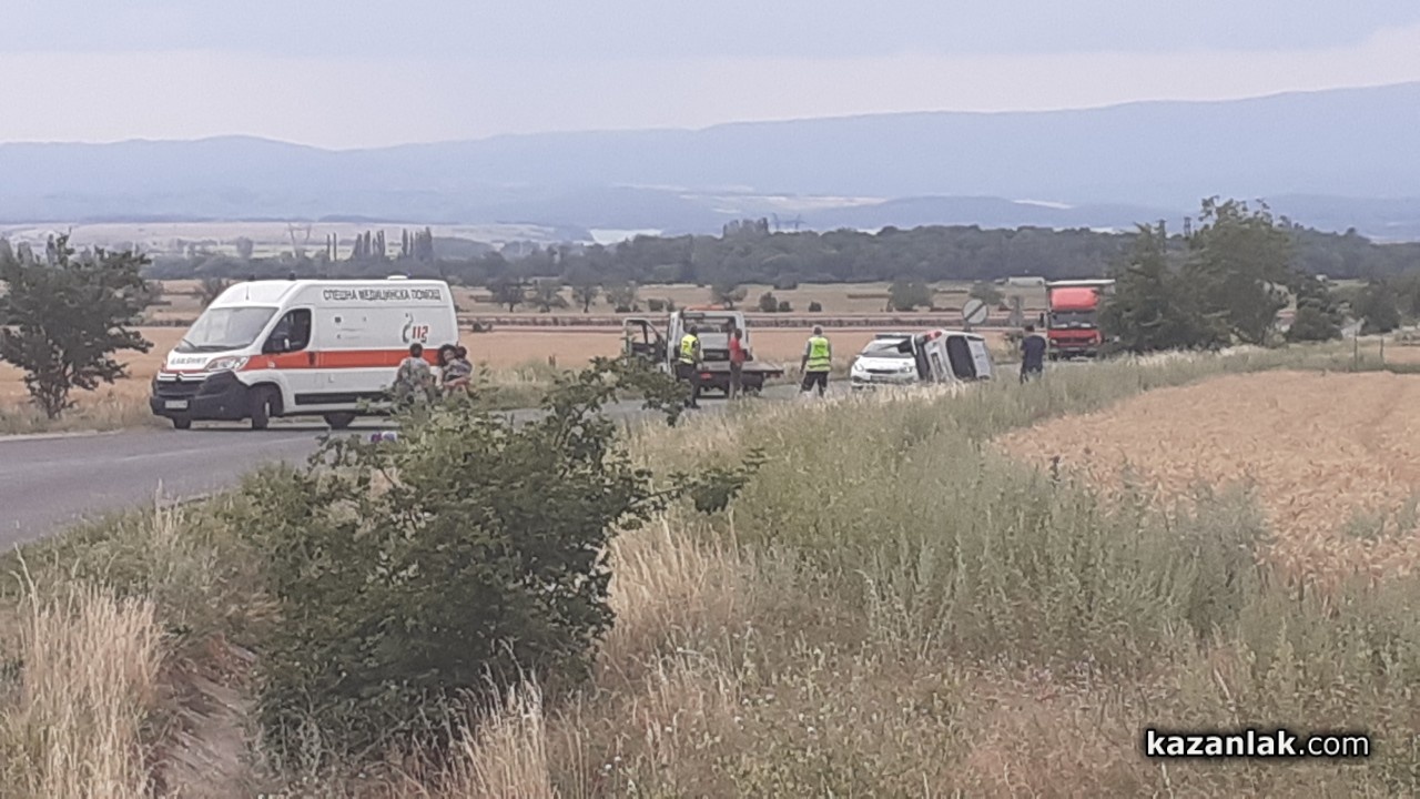 По първоначални данни няма пострадали. В автомобила са се движили трима човека, едно дете и куче. Движението по пътя временно бе блокирано, регулира се от патрули на полицията.