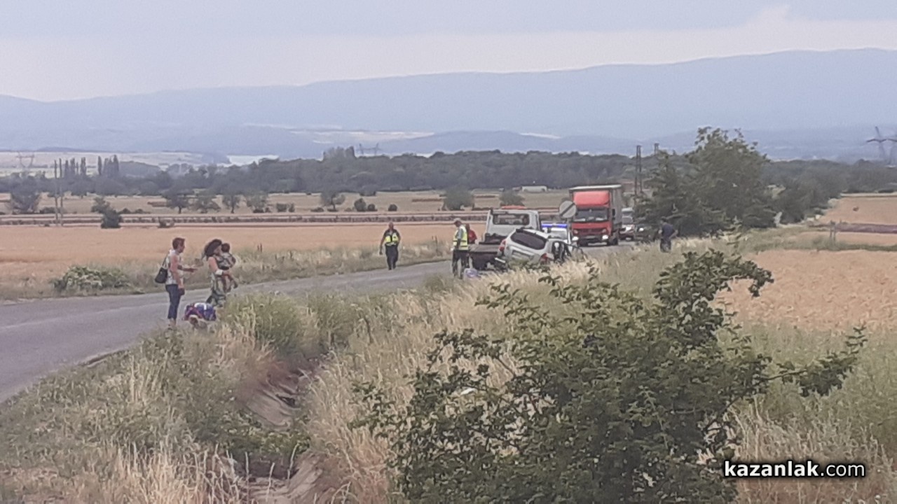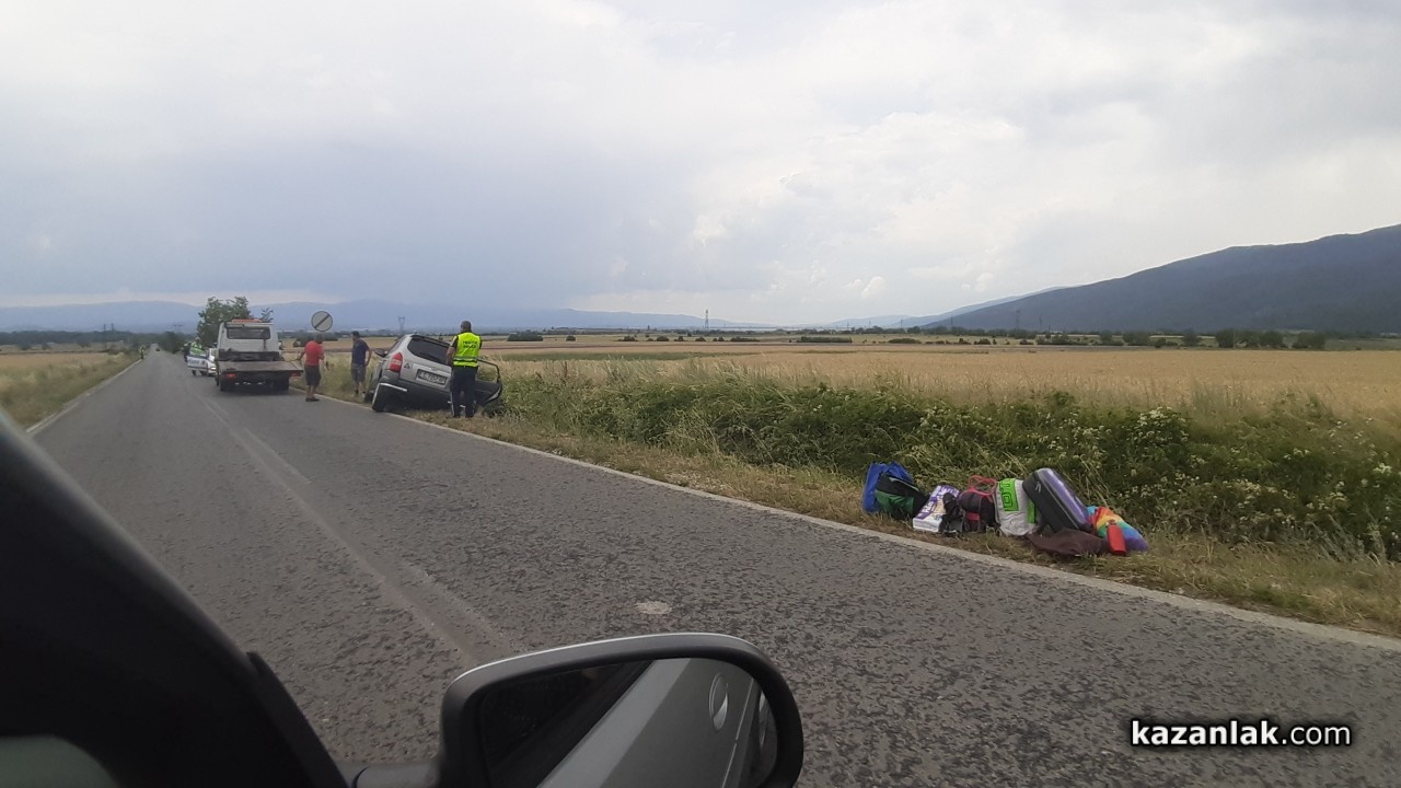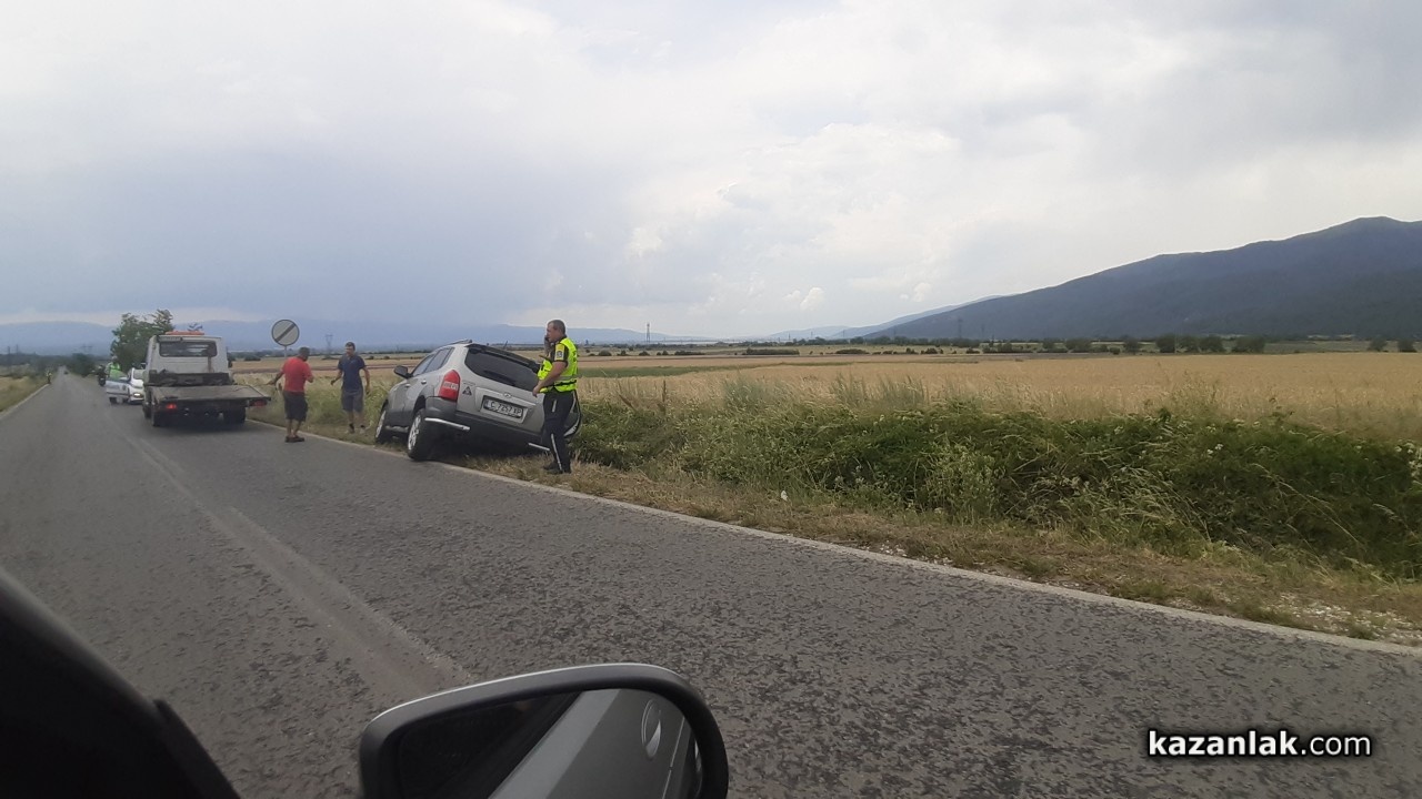 Инцидентът стана днес, около 12:20 часа. Хюндай със софийска регистрация, движещ се в посока към Шейново, излетя в канавката до пътното платно на отсечката между град Шипка и село Шейново.