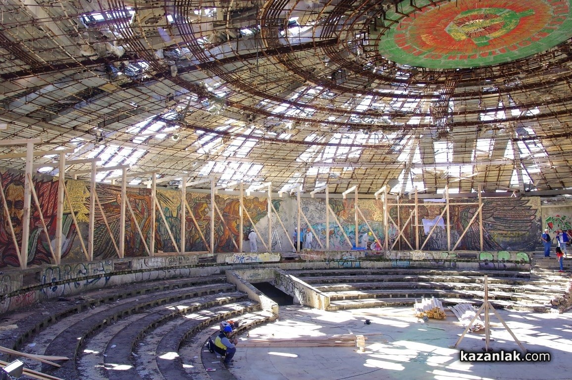 „Много сме щастливи, че днес е денят, в който официално обявяваме започването на реставрационните дейности по паметника Бузлуджа", заяви архитект Дора Иванова, председател на Фондация „Проект Бузлуджа“. 18 експерти извършват аварийни и неотложни мерки за стабилизирането на мозайките на монумента. Екипът работи и по поставяне на временен покрив, който да може да съхрани останалите мозаечни творби.
