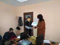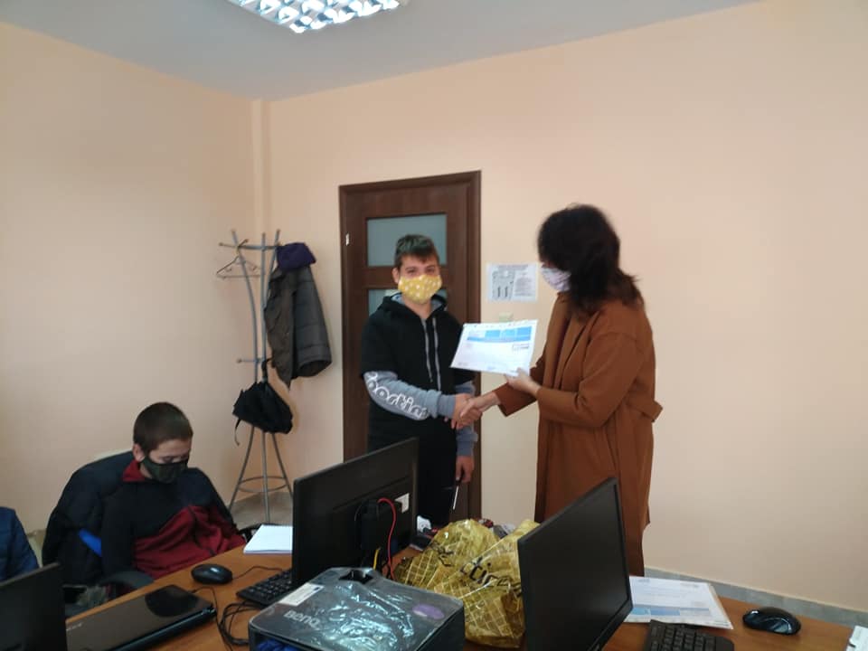 Учениците от Детската академия по програмиране и роботика (ДАПР), обучение "Образователна роботика с микроконтролер ARDUINO", бяха приятно изненадани от Красимира Чорбаджийска, преподавател от ПГ "Иван Хаджиенов". Те получиха награди и сертификати за участието им в две събития - #MeetAndCode, организирани от гимназията - "Виртуална лаборатория по електроника и роботика", и "Създай виртуална автоматизирана система и се състезавай с нея!".