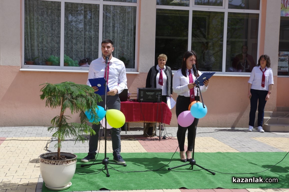 С ритуал по поднасяне на цветя на бюст-паметника на Иван Хаджиенов в двора на гимназията изпълнен от първия казанлъшки гвардейски отряд започнаха честването на патронния си празник учители, ученици и официални гости.