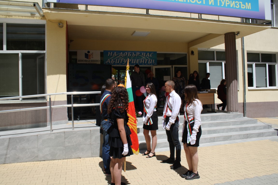 Основната част от празника бе отделена на абитуриентите на гимназията. Със специално тържество в училището те бяха изпратени от своите учители, приятели, родители. 44 момчета и момичета чуха за последен път училищния звънец и се разделиха с класните стаи в емоционално и много зрелищно тържество. Зрелостниците завършват в 2 специалности – „Бизнес мениджмънт“ с класен ръководител Иванка Джонджорова и „Производство и обслужване в заведенията за хранене и развлечения“ с класен ръководител Недялка Георгиева. Организацията на събитието традиционно е дело на самите зрелостници, които тази година успяха да впечатлят с оригинален сценарий, музика и много други приятни изненади. На тържественото изпращане бяха наградени зрелостниците от ПГЛПТ, които са се отличили през годините и са дали своя принос за утвърждаване авторитета на гимнaзията.