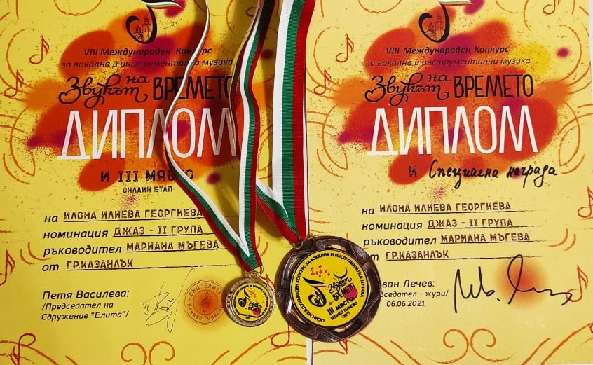 В категория класическо пиано три възпитанички на г-жа Мъгева се представиха много успешно в онлайн формата на конкурса. Валентина Тояганова, Виктория Гочева и Антония Хърлева получиха медали и Дипломи за отлично представяне за клавирните си изпълнения.