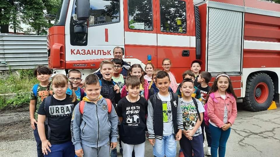 Вчера, 10 юни, учениците от ОУ "Георги Кирков", в часовете по извънкласните дейности по интереси, посетиха Районна служба “Пожарна безопасност и защита на населението” в гр. Казанлък. Пожарникари от цялата страна – Плевен, Кърджали, Враца, Пловдив, Стара Загора и Националната офицерска школа за пожарникари - София, премерваха сили за Купа „Севтополис в спортния турнир изкачване с щурмова стълба на учебната кула.