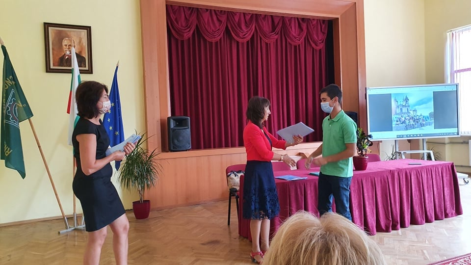 В ранния следобед на празничен ден екипът на гимназията организира още едно събитие- заключителна конференция по поредния проект за мобилност на програма Еразъм+, реализиран през последните две години в гимназията. 30 ученици и 9 преподаватели са участниците в партньорски срещи и обучения в Италия и Португалия. Всички те днес разказаха за своите преживявания, похвалиха се с придобитите умения и получиха сертификати.