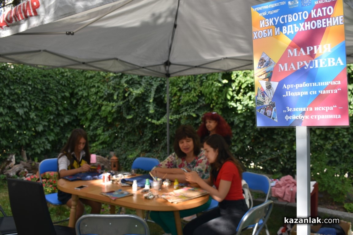 За първа година към „Европейски дни на наследството” в чудомировата къща, но не и за първи път в Казанлък, се присъединиха и организаторите на арт работилничката „Подари си чанта“. Десетки бяха желаещите, като присъствието на деца и младежи надделяваше, да си направят собствена, единствена, уникална чанта. Изработена лично от тях. С помощта на художник или на шаблони те творяха върху платовете. По-напредналите в изкуствата или тези с по-голямо въображение се оставиха на собствените си идеи, и чудесните резултати бяха на лице.