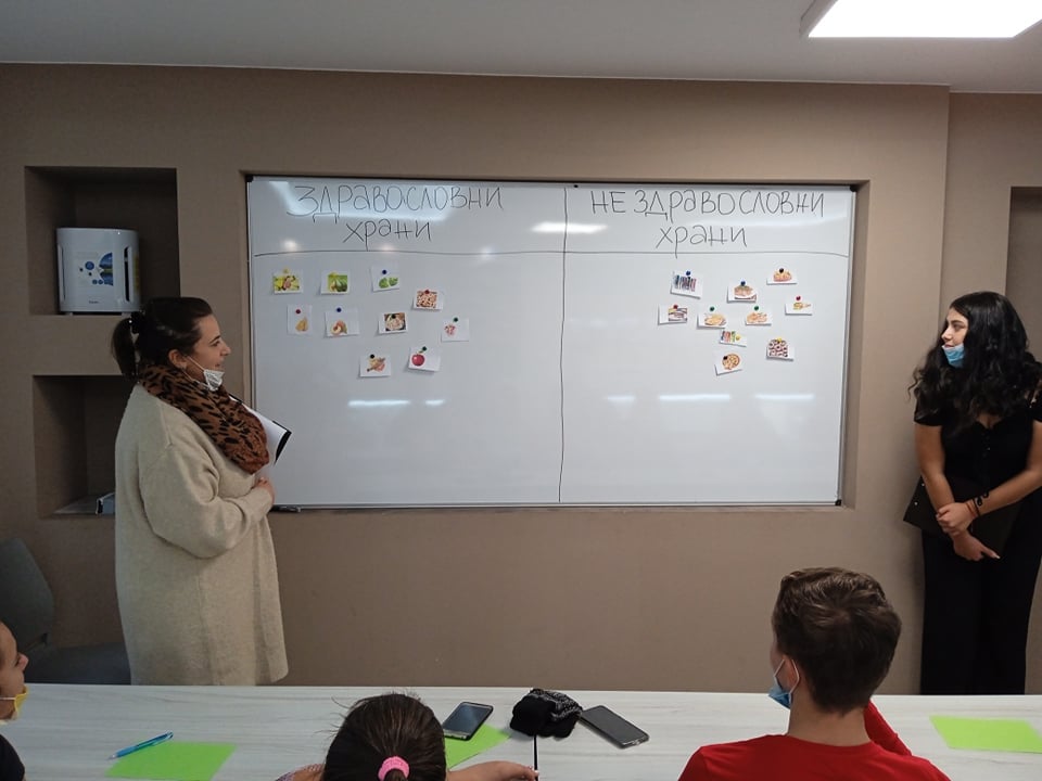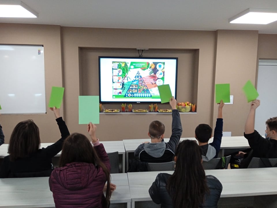 Учениците, трябваше да отговарят на любопитни въпроси, свързани със здравословното хранене и те се справиха блестящо с бързи и точни отговори. Габриела Павлова от 8 В клас запозна своите съученици с отговора на въпроса: „Какво означава да се храним здравословно?“.
