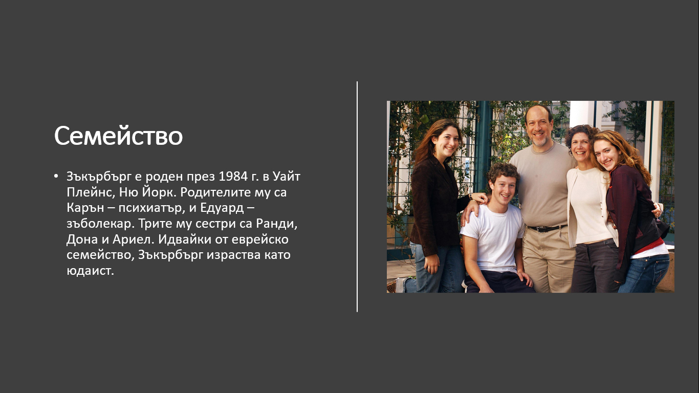 Ученици от 10 А клас, специалност "Електронна търговия" се включиха, макар и онлайн, в инициативата, като обсъдиха предимствата и недостатъците на това да си предприемач, и разказаха за свои близки и приятели, които развиват собствен бизнес. Ивет Томова запозна съучениците си с биографията на един от най-успешните предприемачи на нашето време - Марк Зукърбърк, който едва 20-годишен създава империята Фейсбук и в момента е притежател на огромно богатство. Предоставяме я и на вашето внимание.