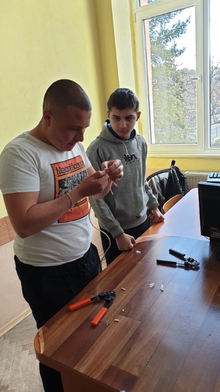 Днес, 10 март, ученици от 11 и 12 клас, под ръководството на инж. Дора Бомбева, премериха уменията си в областта на компютърните мрежи и приложната електроника. За целта бе организирано забавно състезание в два кръга. Учениците бяха разделени в 4 отбора, всеки съставен от двама човека. В първия кръг единайсетокласниците трябваше да изработят мрежови кабели, като двата най-бързи отбора преминаха във втори кръг. Там те се съревноваваха в състезание-закачка по приложна електроника, в което трябваше да запоят човече на лежанка.