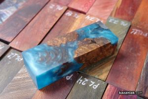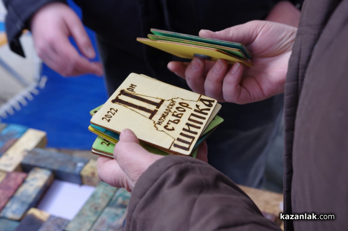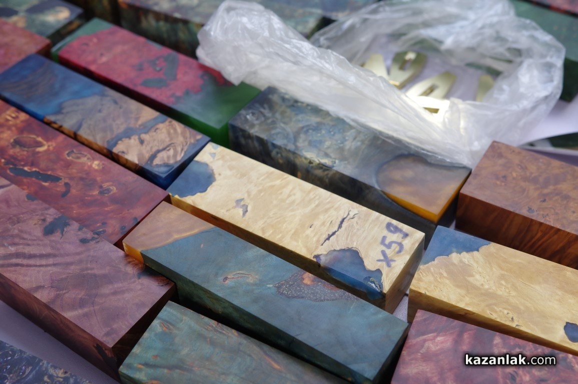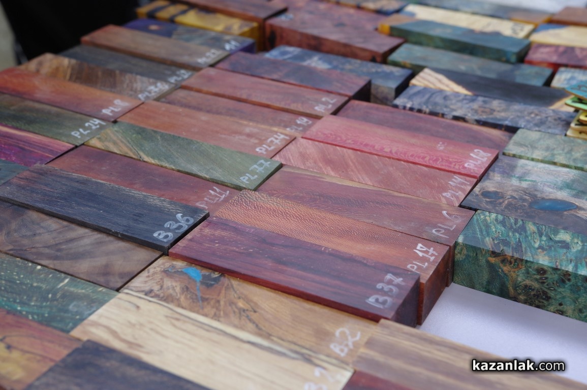 Иво Генчев и Генади Иванов пък идват от град Павликени. Гостуваха на шипченци и на първия ножарски събор и днес отново са тук. Те представиха красиви заготовки за изработка на дръжки на ножове, а технологията споделиха пред нас: „Ние взимаме туморни дървета с много интересни наплетени шарки, напълваме ги със смола, така че да ги направим вечни – дървото става извънредно твърдо, не може да гние и не се променя. Използваме материал, който главно може да се намери в България – елша, чинар, бук, орех – ореха се търси особено много. Използваме и чужди сортове дървен материал, който вирее тук като американски клен."
