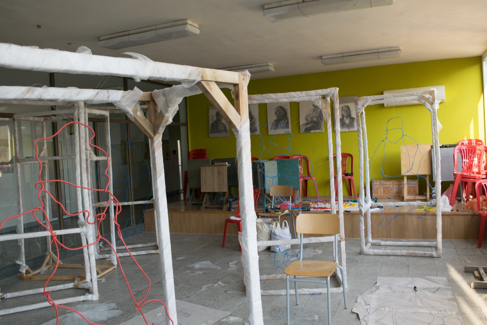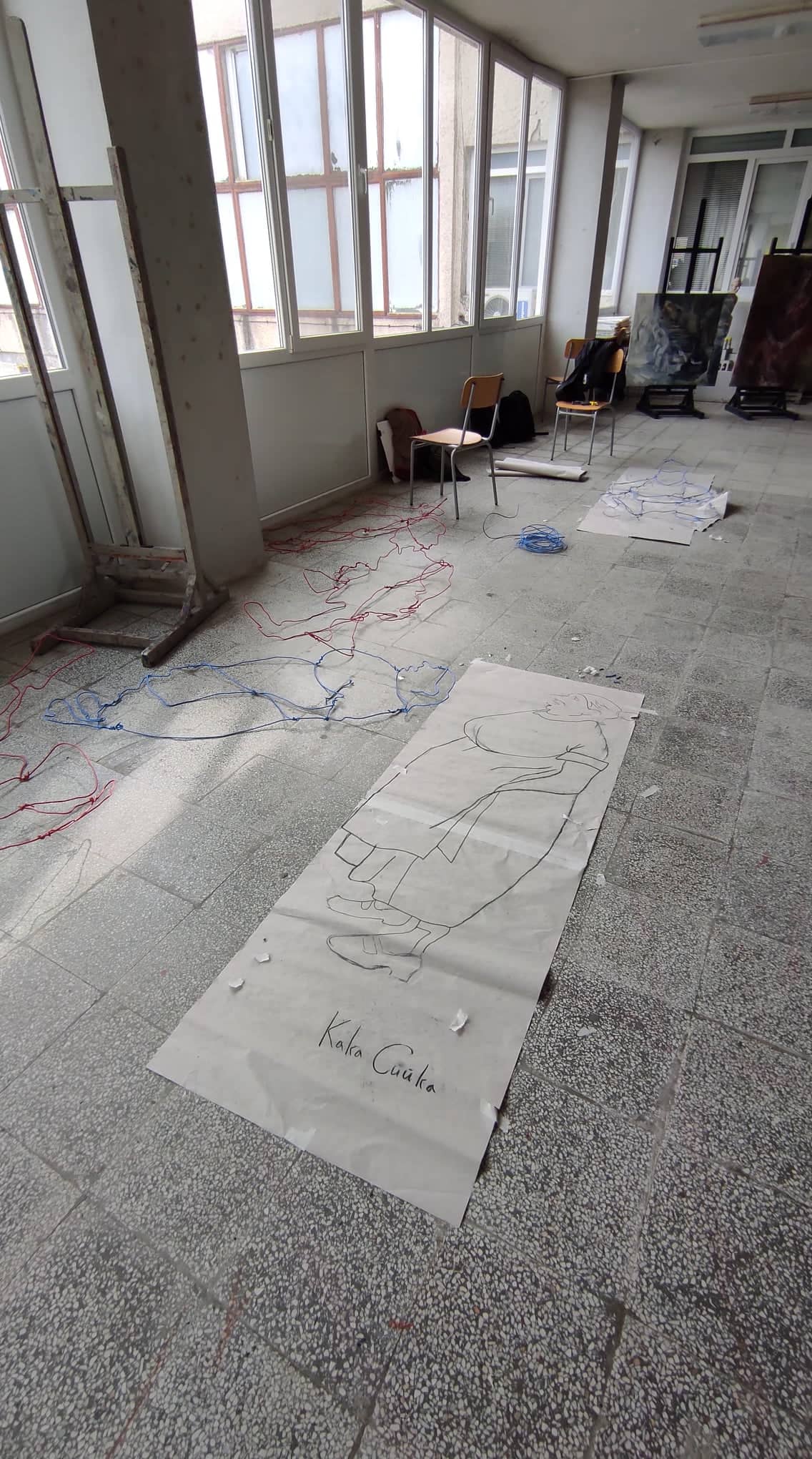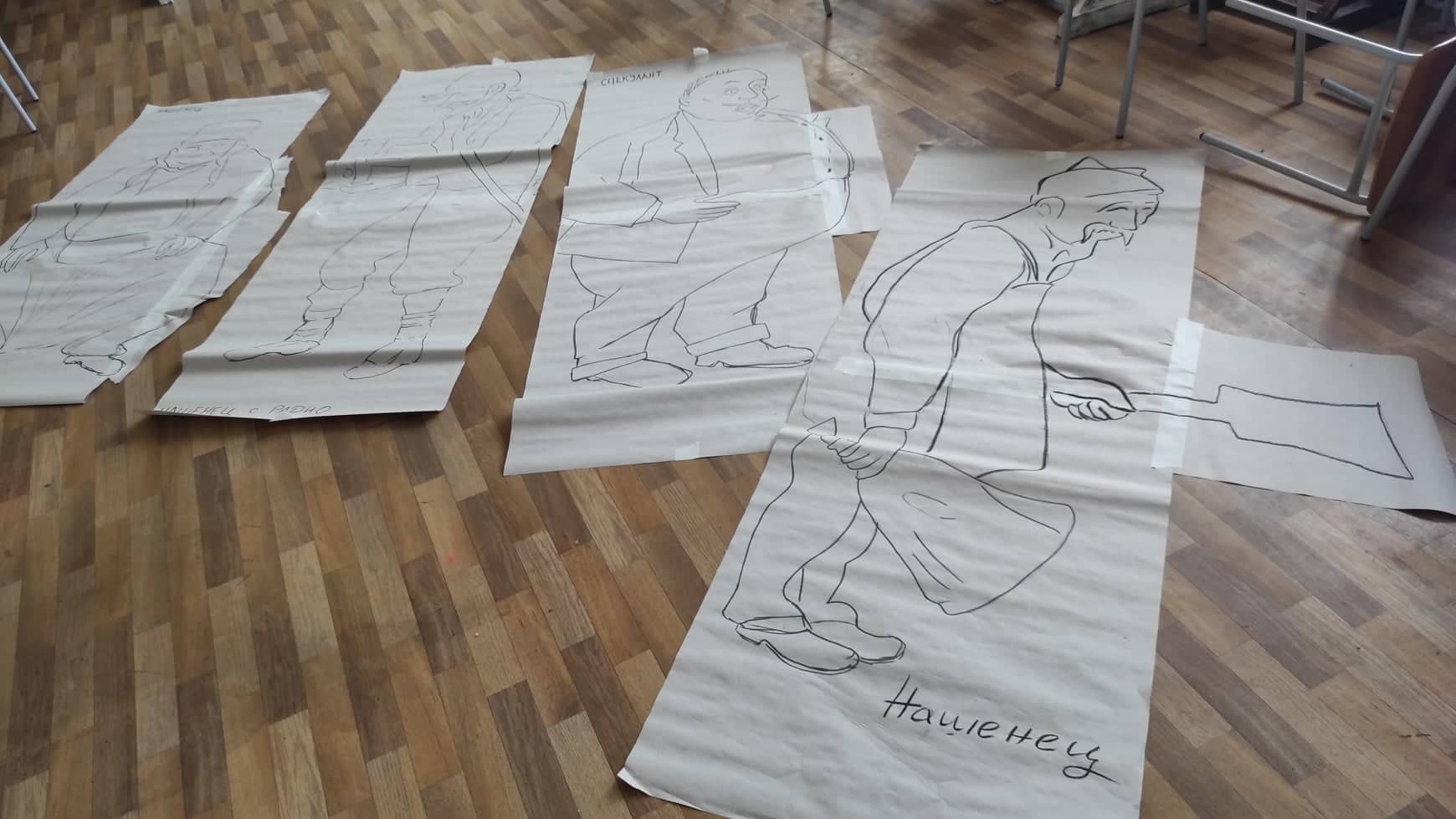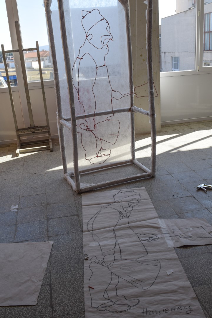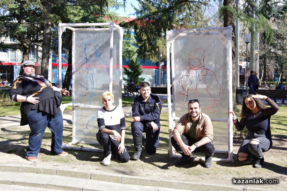 (Елеонора): Тази година решихме да направим нещо по–различно, използвайки рисунки в пространството. В работите на Чудомир най-ценното е изказа и рисунъка му, чрез който той обхваща „Нашенците“ . Вдъхновени от това решихме да създадем рисунки в пространството чрез телове за да може пред нас да оживеят тези нашенци, но по един по-различен и прекрасен начин. Всяка година се опитваме да направим различни инсталации, да има съчетания между съвременното и Чудомир. Идеята е по този начин, неговото творчество да продължава да оживява сред нас.