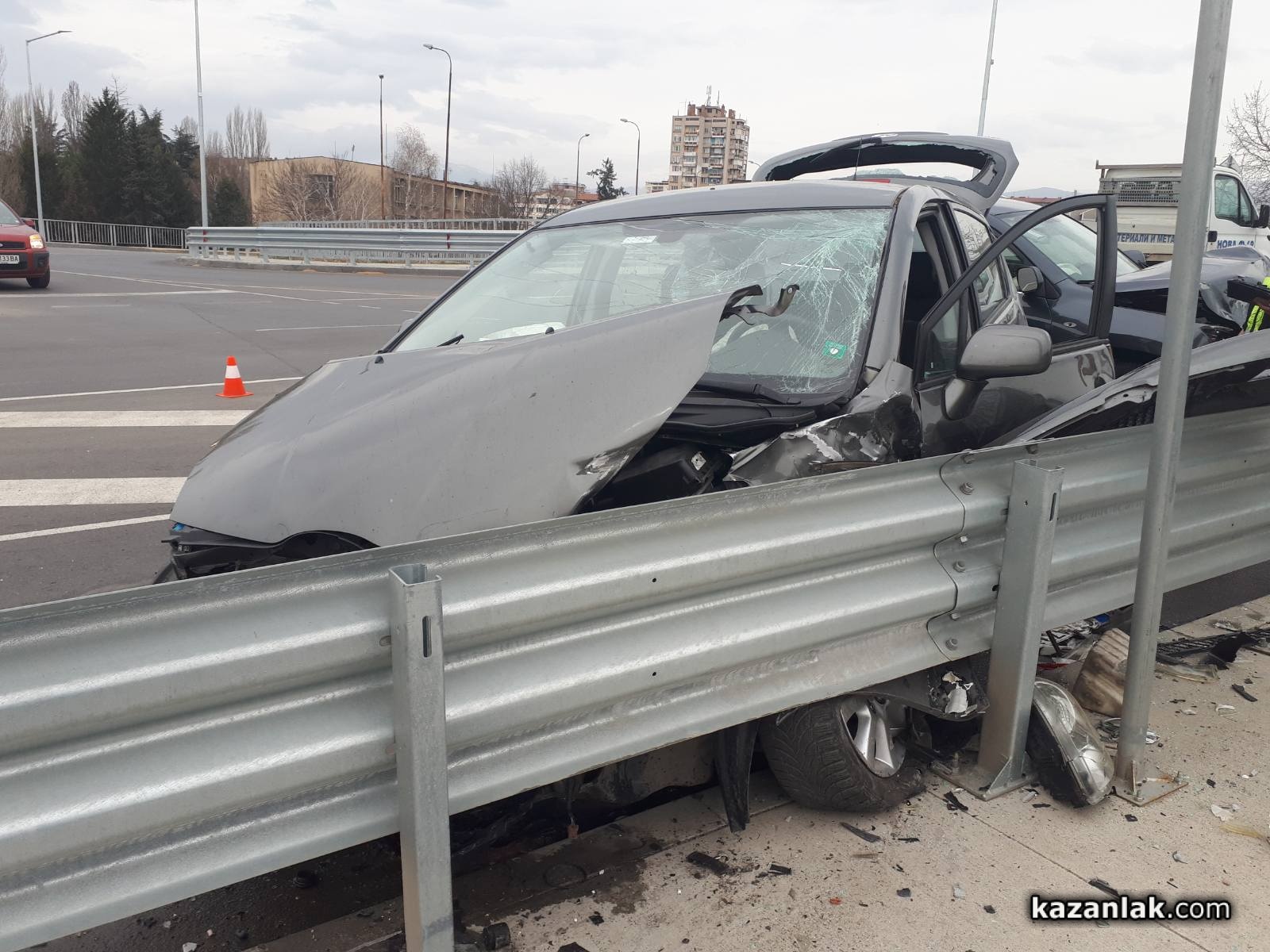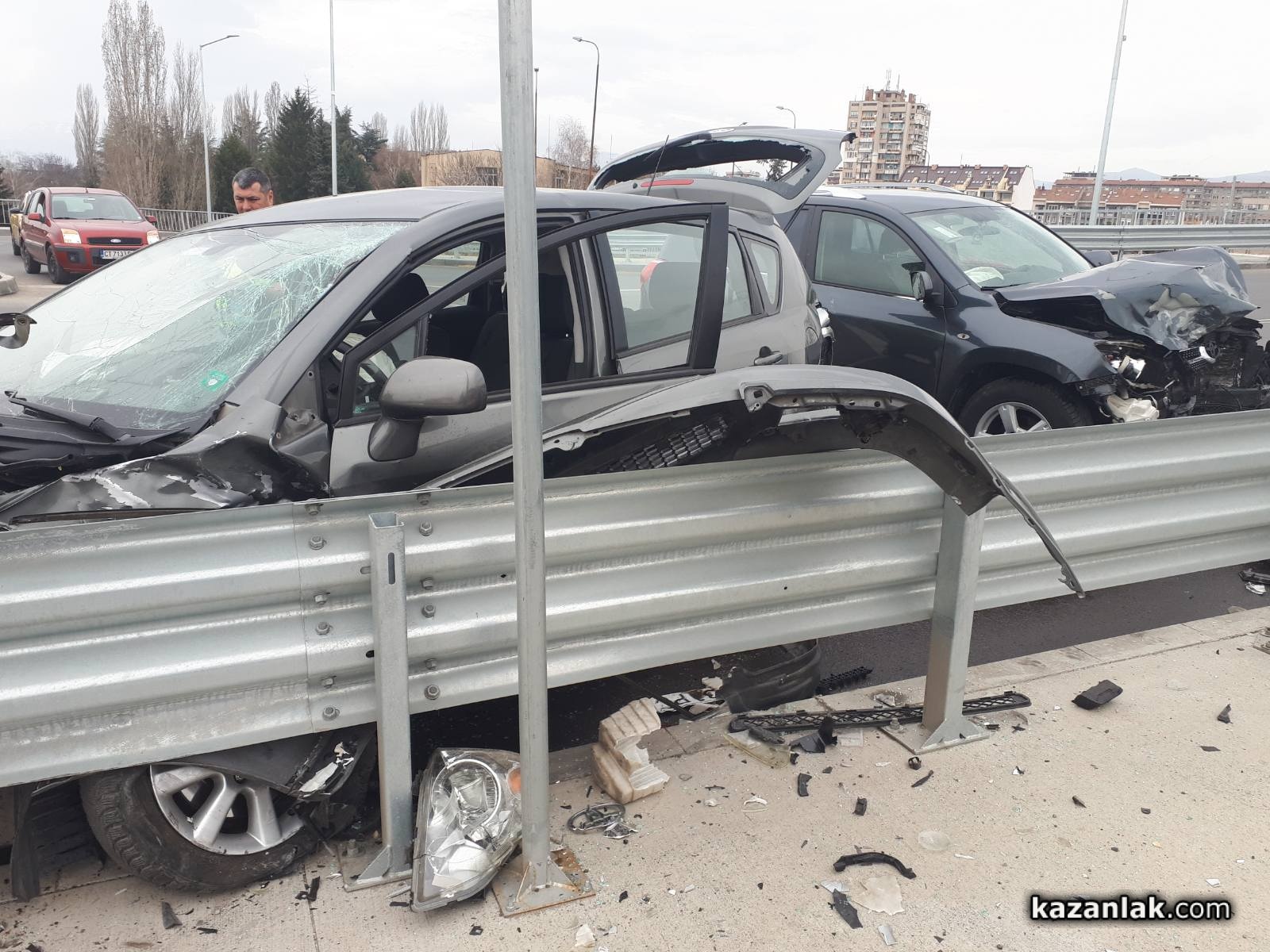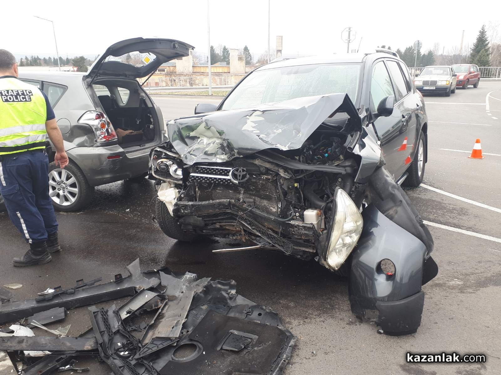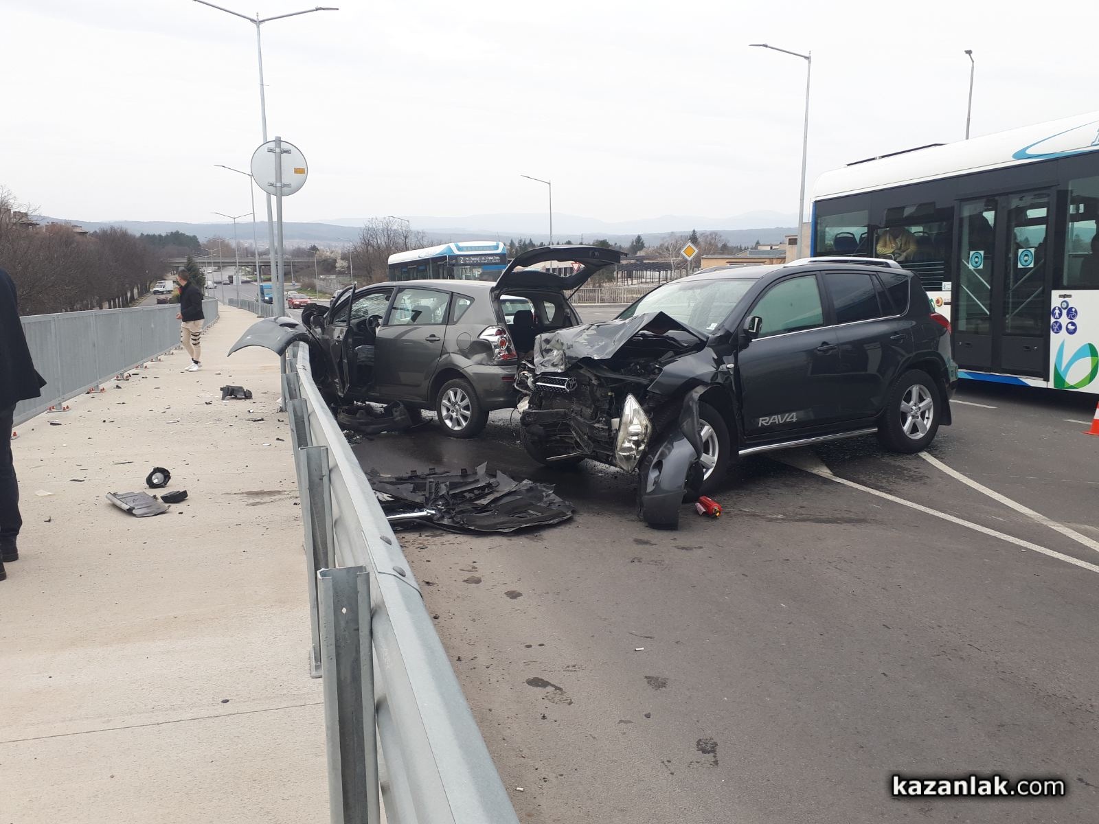 Два автомобила „Тойота” се блъснаха на надлез Катекс днес, около 12:00 часа.