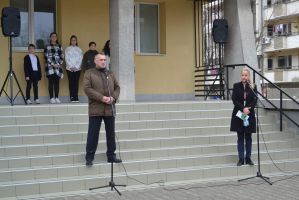 Директорът на училището г-жа Сребра Касева, запозна децата с новия им приятел, като им пожела да го пазят и да се грижат с обич за него.