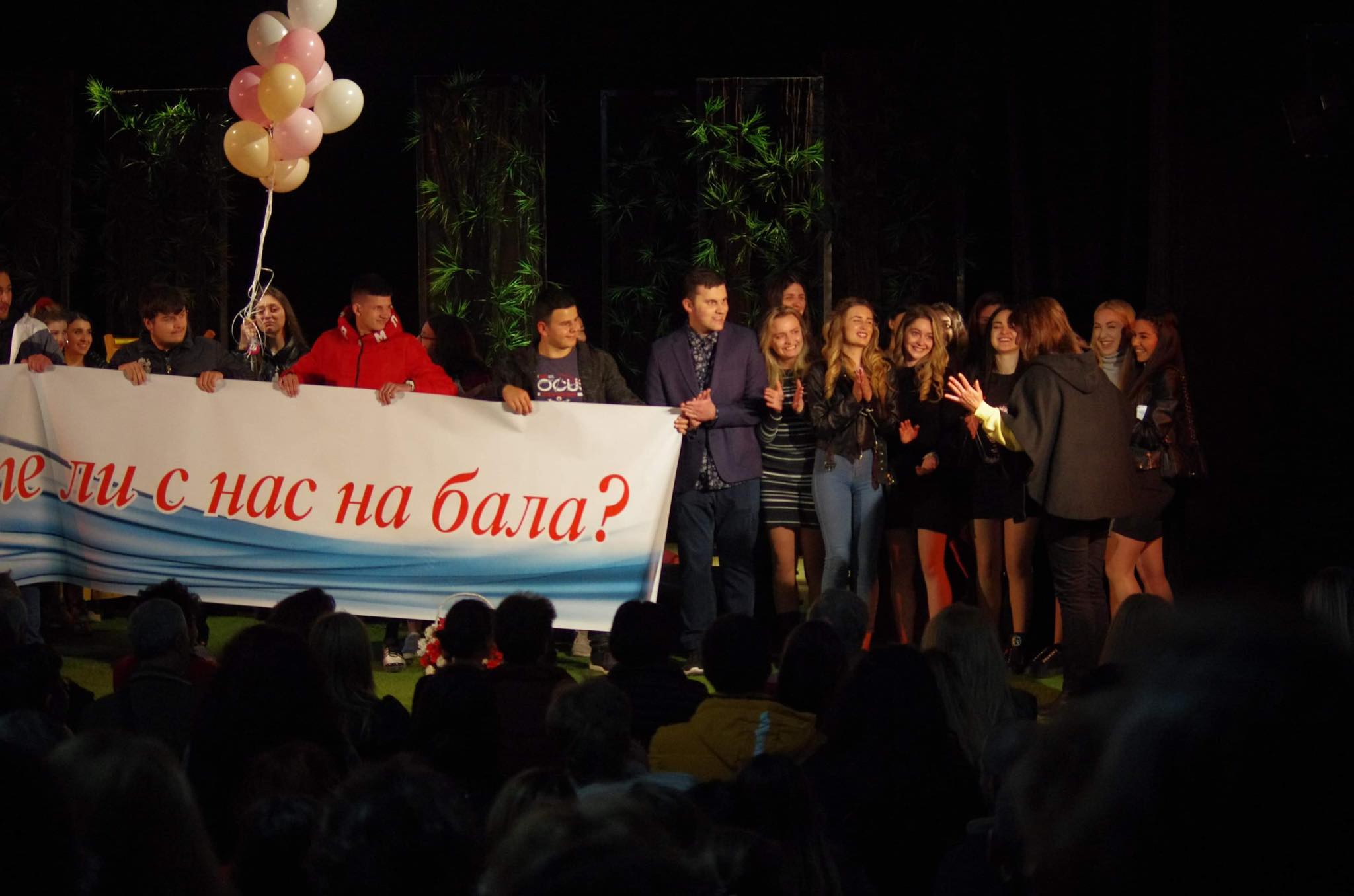 Учениците изпълниха сцената държейки огромен надпис „Ще дойдете ли с нас на бала”! Учителката излезе развълнувана на сцената, за да благодари пред всички за изненадата и разбира се официално да приеме поканата на своя клас.