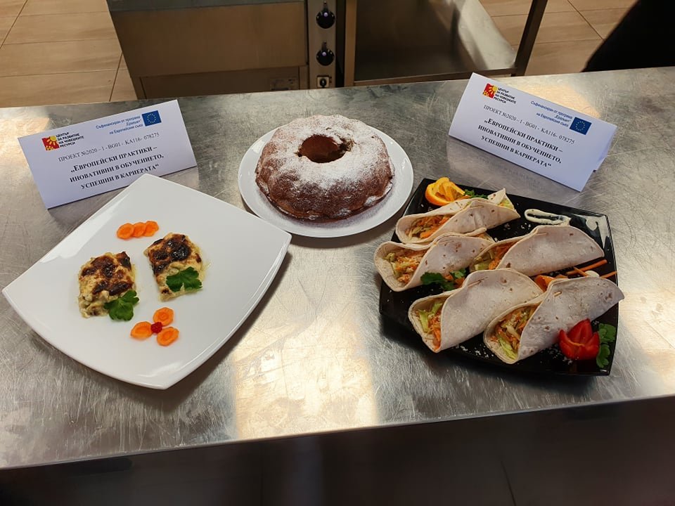 Другата половина от участниците в Мобилността показаха традиционни специалитети от португалската кухня, научени от техните работни места в Лисабон. Те представиха пред бъдещите хотелиери и ресторантьори от 10 и 11 клас, които се готвят за новата мобилност на ПГЛПТ в Унгария, различни кулинарни техники и споделиха опит и преживявания от проекта. Традиционно бакаляо (риба треска), бананов хляб и здравословна фреш тортиля бяха приготвените ястия в уоркшопа, които бързо-бързо изчезнаха от чиниите.