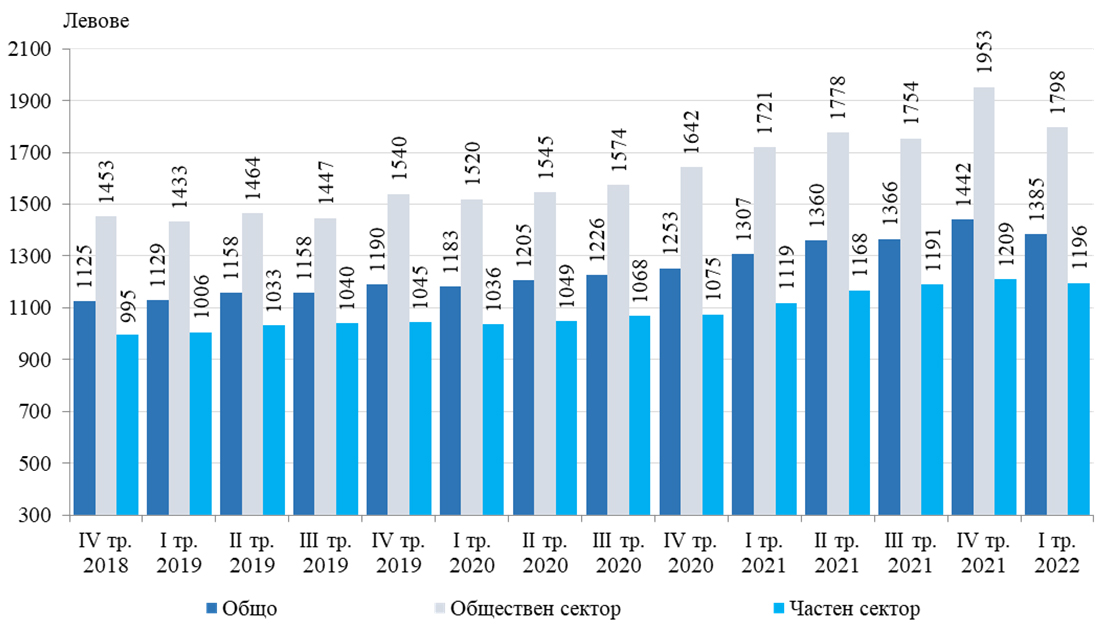 Средната брутна месечна заплата в област Стара Загора за януари 2022 г. е 1 352 лв., за февруари - 1 329 лв. и за март - 1 473 лева.