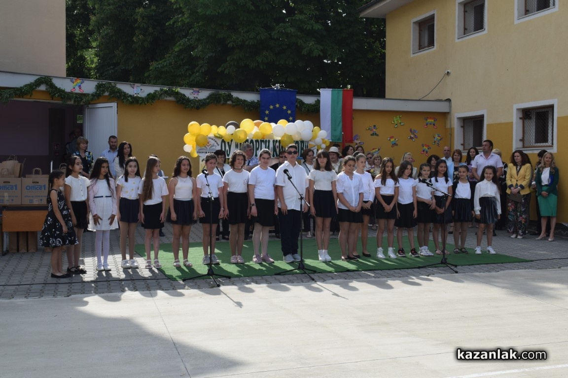 Кметът Галина Стоянова поздрави присъстващите по случаи 24 май: „ Днес виждам толкова много усмихнати деца, ученици, родители и учители тук. Това за мен е знак, че в този ваш дом училището, откривате онова място , което ви прави щастливи. В ОУ „Георги Кирков“ е събран елита на учителите и това не са просто празнични думи, защото тук има и млади, има и по-мъдри и по –големи учители, но тук се вижда, че има приемственост . Никъде другаде не съм виждала толкова много от учителите ветерани , покланям се пред тях и нека им благодарим . Вие учителите, които работите в ОУ „Георги Кирков“, наистина сте взели най – доброто от тях защото имате осанката и знанията, но най-вече имате желанието и обичта към децата да ги направите такива каквито сте и вие – силни , амбициозни , истински граждани на нашия Казанлък. Пожелавам ви да сте здрави и все така единни. Скъпи родители в този дом , в това семейство на ОУ „Георги Кирков“, вие сте остави най-скъпото, което имате - вашите прекрасни деца. Няма друг град, в който да има толкова знаещи и можещи деца – това са вашите деца. Благодаря ви, че са тук, че са силни, красиви и амбициозни. Скъпи деца вие ще запомните 24 май с химна „Върви народе възродени“, ще го помните и с вашата учителка. Пожелавам ви все ден да се преоткривате, но най-вече да останете човеци и където да отидете по света, никога не забравяйте, че сте тръгнали от този двор, от това училище, от този град.“
