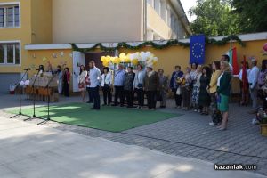 Официалната церемония започна точно в 09:00 с посрещане знамето на училището. Гости на празника бяха: Кмета на Галина Стоянова , председателя и членовете на обществения съвет на училището - Кристина Манева, д-р Момчил Маринов – Директор на ИМ „Искра“, Деница Димитрова, Кристина Дойчинова, преподаватели по занимания по интереси: Стефан Папукчиев – директор на Музея на фотографията и преподавател по дигитална фотография, Радослав Петков – зам. директор на ИМ „Искра“ – преподавател по дигитални обиколки в Казанлък, Ваня Минчева – преподавател по хореография, Стефана Минева – преподавател в клуб Казанлък „Вчера, днес и утре“, Антония Каярова и Николай Тенев – преподаватели по спортни танци, Мартина Иванова – преподавател по приложни изкуства, Митко Костадинов – преподавател по тенис на корт.