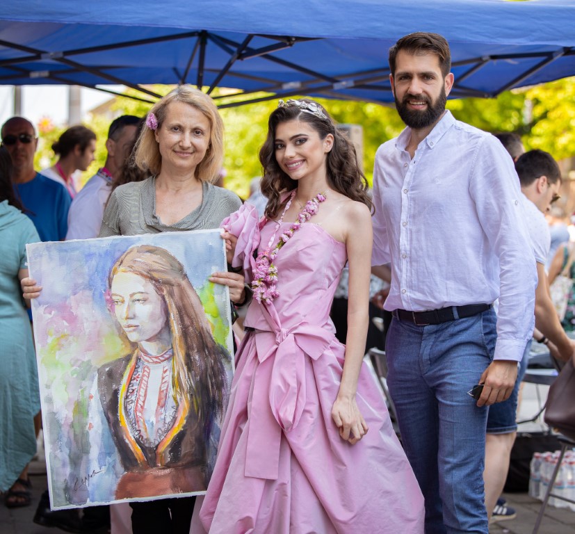 Художничката Селма Тодорова въдвори красотата на тазгодишната Царица Роза Белослава Желева в акварелна картина. Портретът е по фотография на Добромир Райнов, който е част от екипа на фондация „Нашият дом е България”.
