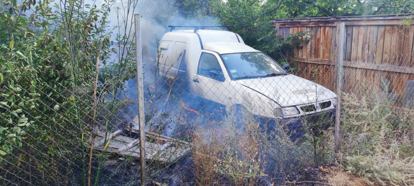 Пожарът е тръгнал след почистване на двор на ул. „Кап. Петко Войвода". Наемателят на имота се е опитал да го изгаси сам, но пламъците обхванали спрения в двора автомобил.