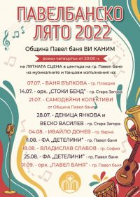 Тази вечер в 20:00 часа е традиционният за Павел баня летен концерт в четвъртък вечер. На сцената в центъра на града ще се качат самодейните колективи от общината.