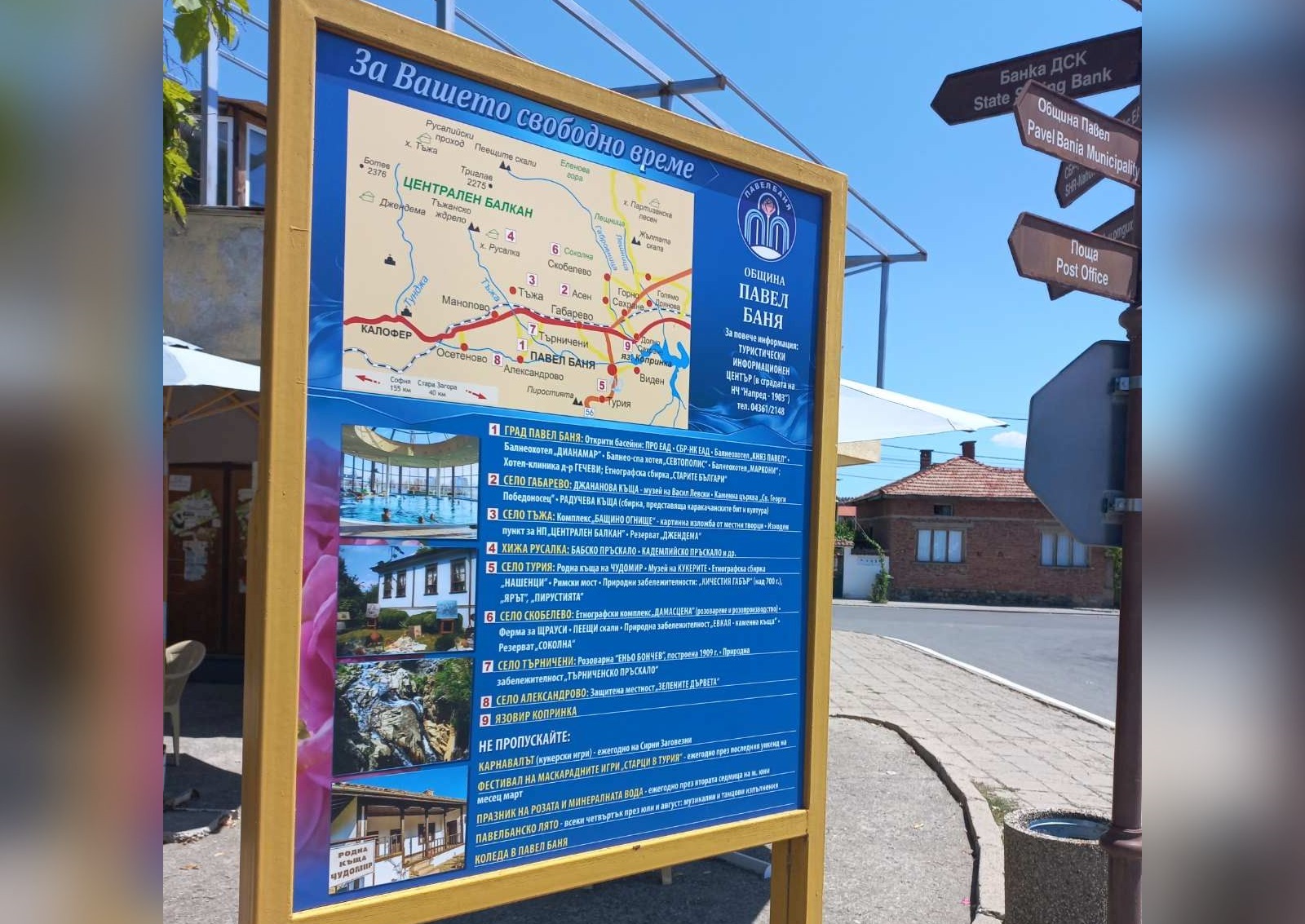 Нова информационни туристически табла са монтирани на видни места в Павел баня. Те разкриват възможностите за развлечение на посетителите, които са решили да съчетаят лечебните си процедури с приятни занимания. Върху новите табла е поместена и картата на Община Павел баня, ясно показваща територията на парк Централен балкан, местоположението на яз. Копринка и туристическите забележителности, които могат да бъдат посетени в района.