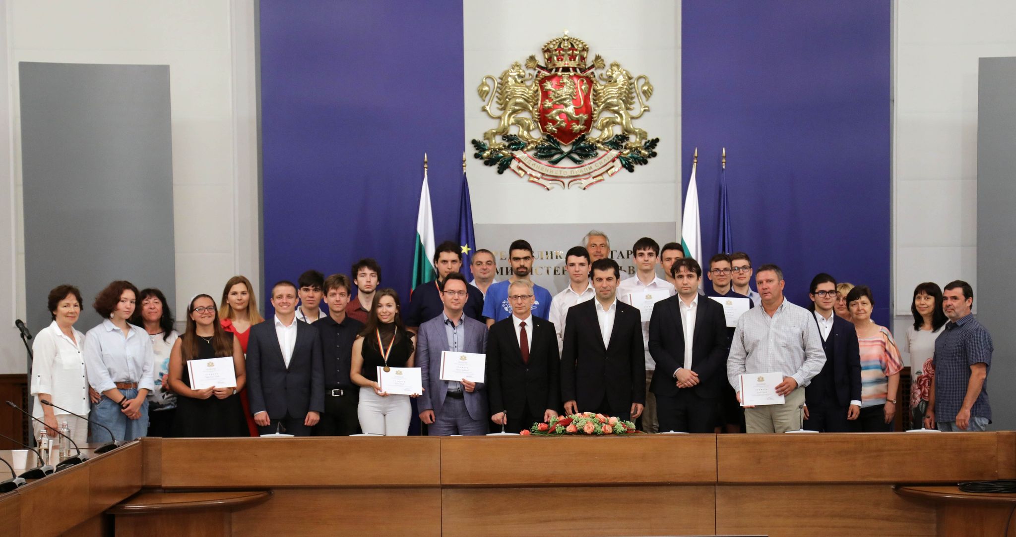 “Чест е да бъдем заедно с Вас, защото вие сте показали невероятен успех на световната сцена, но може би не си давате сметка колко допълнителни плюсове носите на България с тези успехи”. Това заяви премиерът Кирил Петков, който връчи грамоти на ученици и техните ръководители за постигнати високи резултати на международни олимпиади и състезания, проведени през 2022 г. Медалистите бяха поздравени и от министъра на образованието и науката академик Николай Денков, както и от министъра на електронното управление Божидар Божанов.