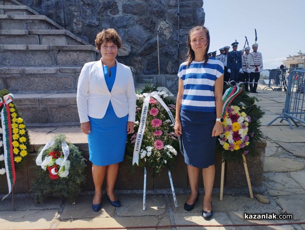 На честванията на Шипченската епопея на чутовния връх пред Паметника на Свободата със свеждане на глава днес венец поднесоха заместник-председателят на Общински съвет – Казанлък Радиана Стефанова и заместник-кметът Лилия Цонкова. Те бяха част от националното честване на признателност към героите на България, които участват в съдбоносните боеве при върховете Шипка и Свети Никола и със саможертвата си орисват Освободителната война на победа в далечната 1877 г.